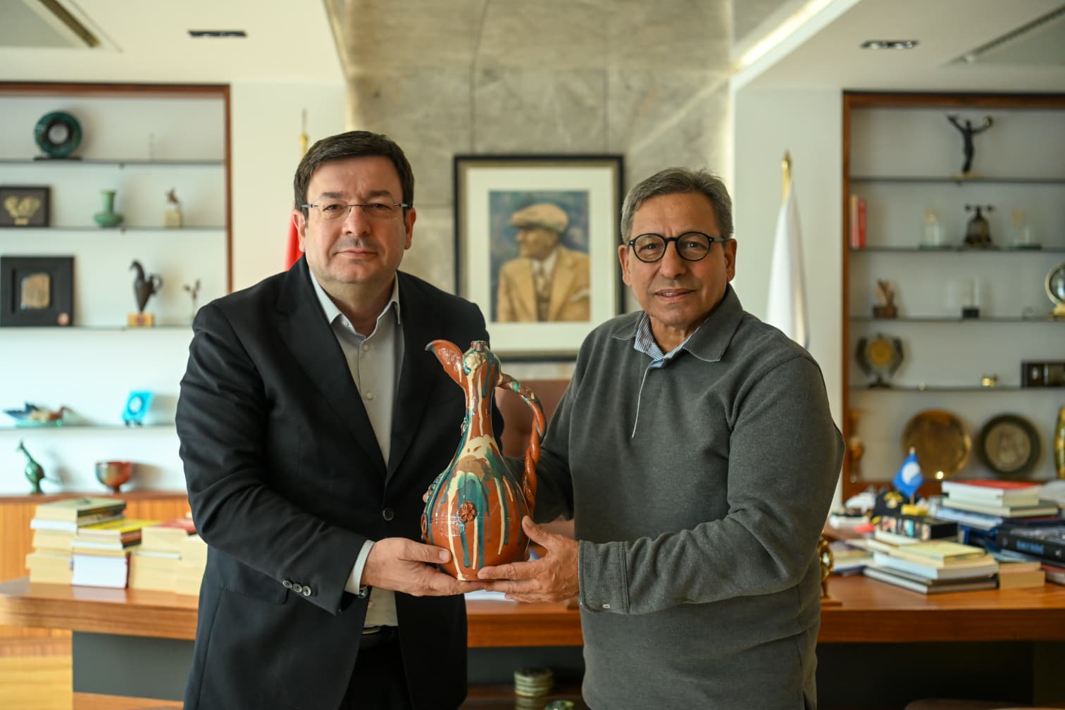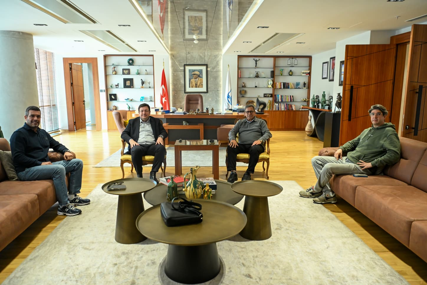 Galatasaray ve Fenerbahçe'de oynayan eski Milli Futbolcu ve Türkiye Futbol Vakfı Başkanı Engin Verel, Belediye Başkanımız Muharrem Erkek'e nezaket ziyaretinde bulundu.