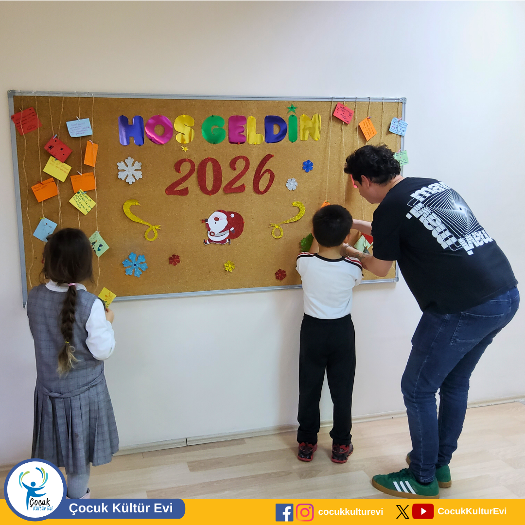 Uygulama alanları içinde her zaman ileri dönüşüm ve geri dönüşüm kavramlarına dikkat çeken ve dönüştürülebilir malzeme kullanımına özen gösteren Çocuk Kültür Evi'nde, eğitmenler tarafından çeşitli atık malzemelerden neşeli bir yılbaşı ağacı ile dilek panosu tasarlandı. Çocuklar tarafından büyük beğeniyle karşılanan yılbaşı ağacı önünde atölye katılımcısı tüm çocuklara Çanakkale Belediyesi'nin hediyesi olan kitaplar sunuldu. Ardından çocuklar hazırlanan panoya 2026 dileklerini yazarak yeni yıl neşesine dahil oldular.