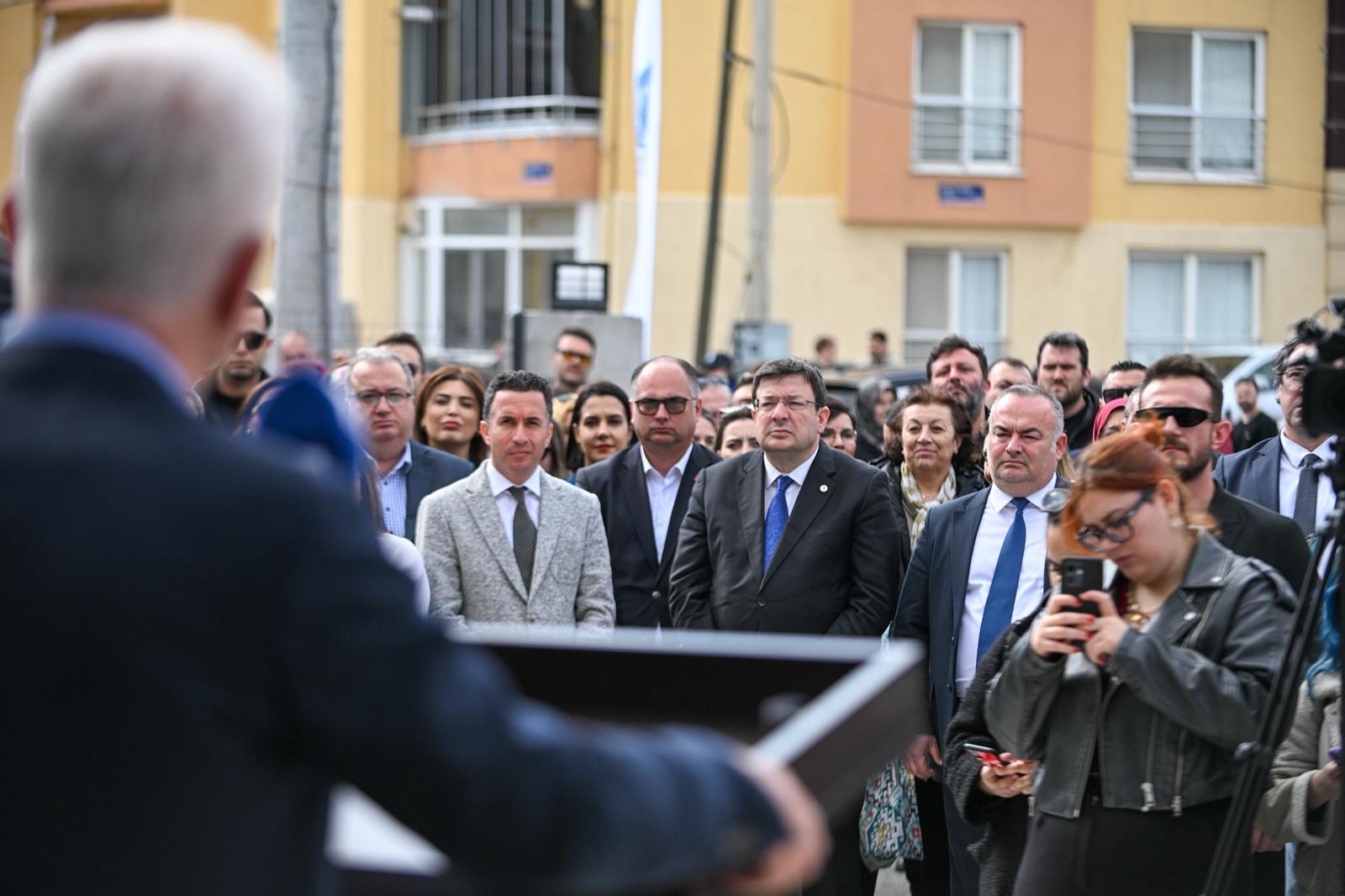 Törendeki konuşmasına Alp Mercan'ı anarak başlayan Belediye Başkanımız Muharrem Erkek ise, “Bugün klasik bir açılışta değil çok farklı anlamlar taşıyan bir açılıştayız. Çünkü pırıl pırıl evlatlar yetiştiren sevgili Alp'in anne ve babası ile Duygu hanım bizlerle birlikte. Tüm aileler dayanışma içinde bu mücadeleyi, adalet mücadelesini, dayanışmayı ve acıyı paylaşmayı sürdürüyor. Alp, üç yabancı dil bilen, makine mühendisi, yazılım konusunda çok üst düzeyde yetenekli, lisanslı bir satranç oyuncusu ve arkadaşı tıp doktoru Yiğit ile beraber Kartalkaya'da başka insanların hayatını kurtarmaya çalışırken canlarını kaybediyorlar. Öyle bir yangından, öyle bir binadan çıkmışsınız ama tekrar giriyorsunuz. Bu gerçekten olağanüstü bir şey. Aslında bir insanlık dersi; böyle bir yüksek karakter, yüksek cesaret, yüksek ahlak, yüksek sorumluluk takdir edilesi ve gerçekten orada kaybettiğimiz tüm evlatlarımızın isimleri, mutlaka yaşatılmalı” diye konuştu.