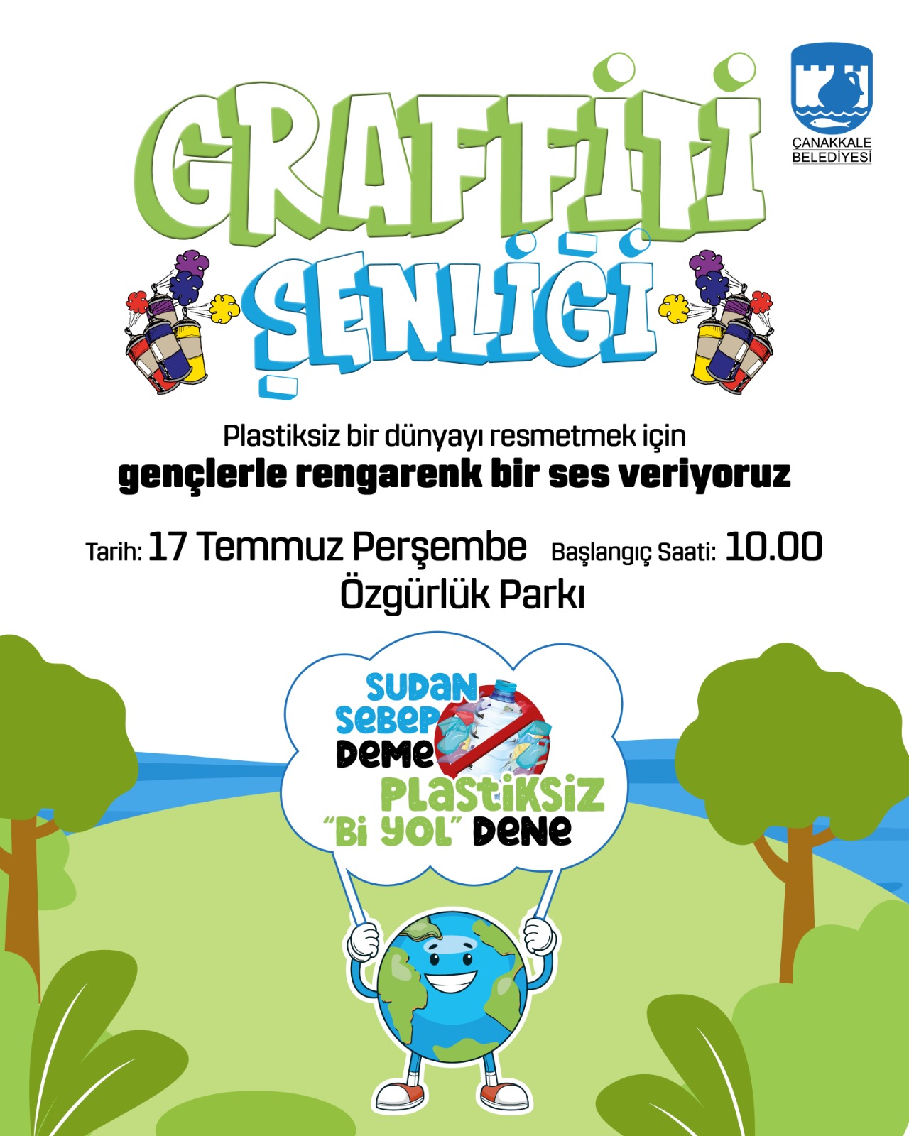 Plastiksiz Temmuz ayı etkinlikleri kapsamında 17 Temmuz 2025 Perşembe günü Özgürlük Parkı'nda Graffiti Şenliği düzenlenecek. Etkinlik, saat 10.00 itibarıyla başlayacak.