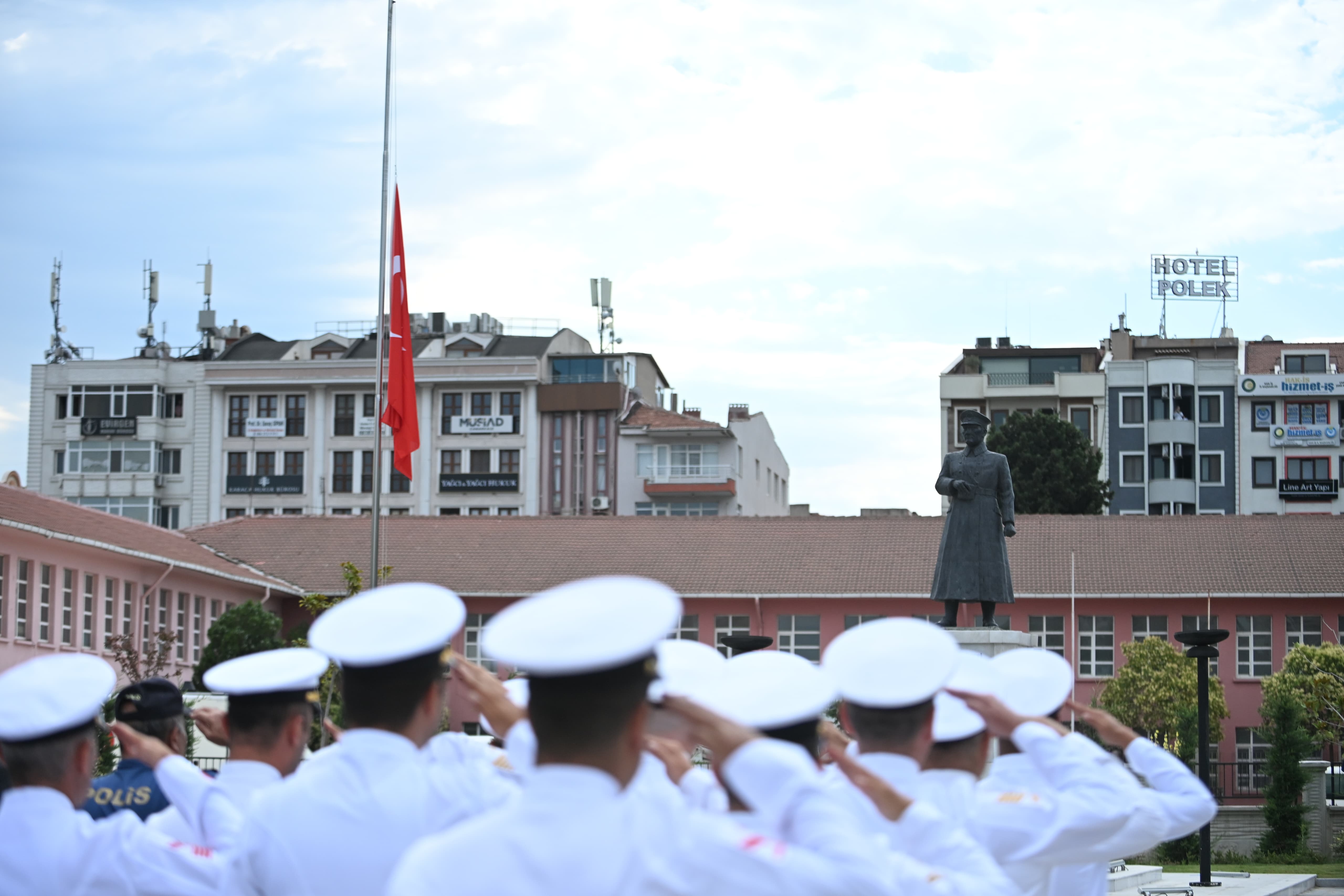Cumhuriyet Meydanı'nda çelenk töreni ile başlayan programda, Çanakkale Bölge Liman Başkanlığı tarafından Atatürk Anıtına çelenk sunumu gerçekleştirildi. Tören, saygı duruşu ve İstiklal Marşı'nın okunmasının ardından, günün anlam ve önemine ilişkin konuşmaların yapılması ile sona erdi.