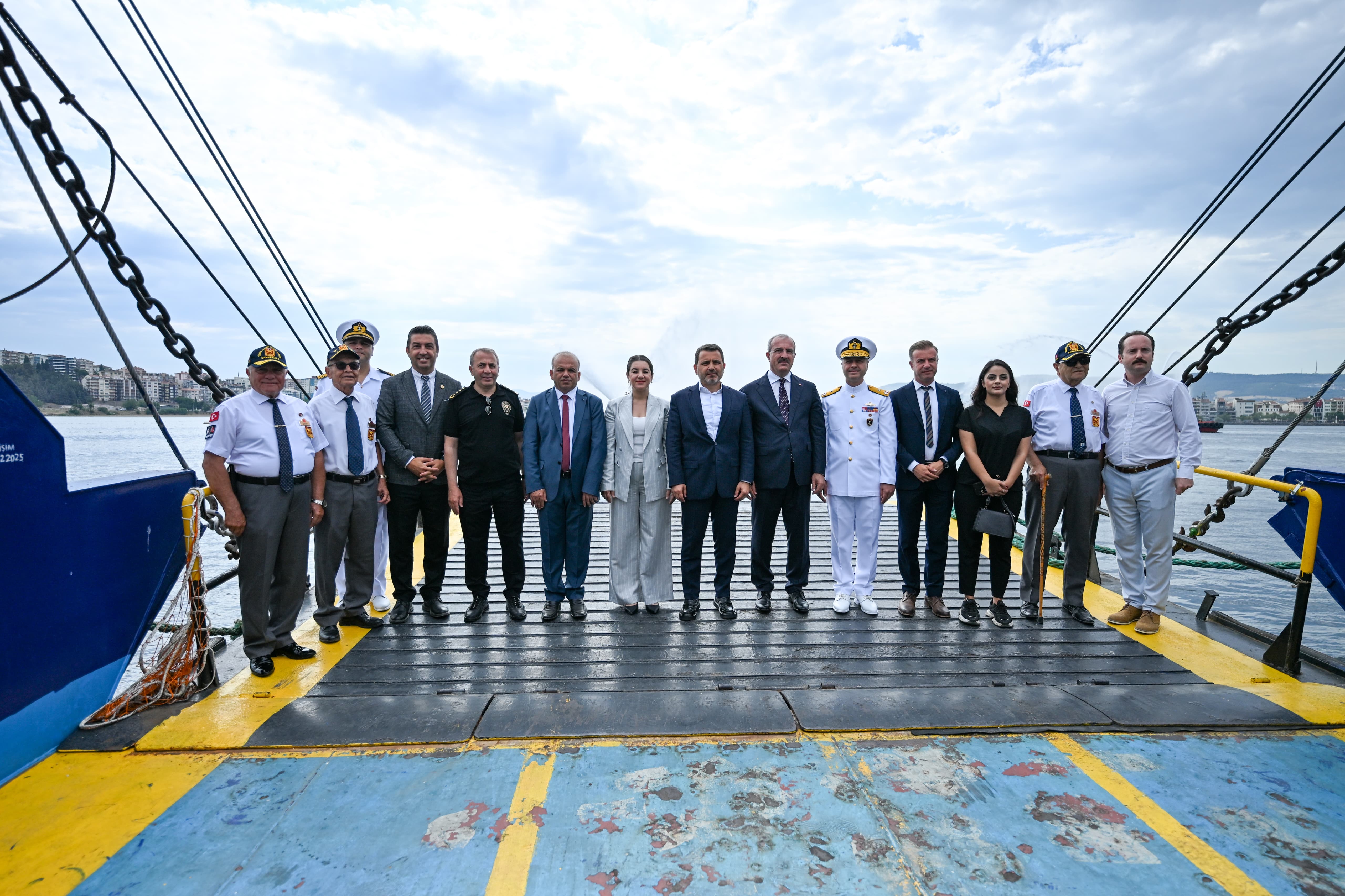Protokol ardından, Denizcilik ve Kabotaj Bayramı dolayısıyla Çanakkale'de demirli olan TCG Fırtına gemisini de ziyaret etti.