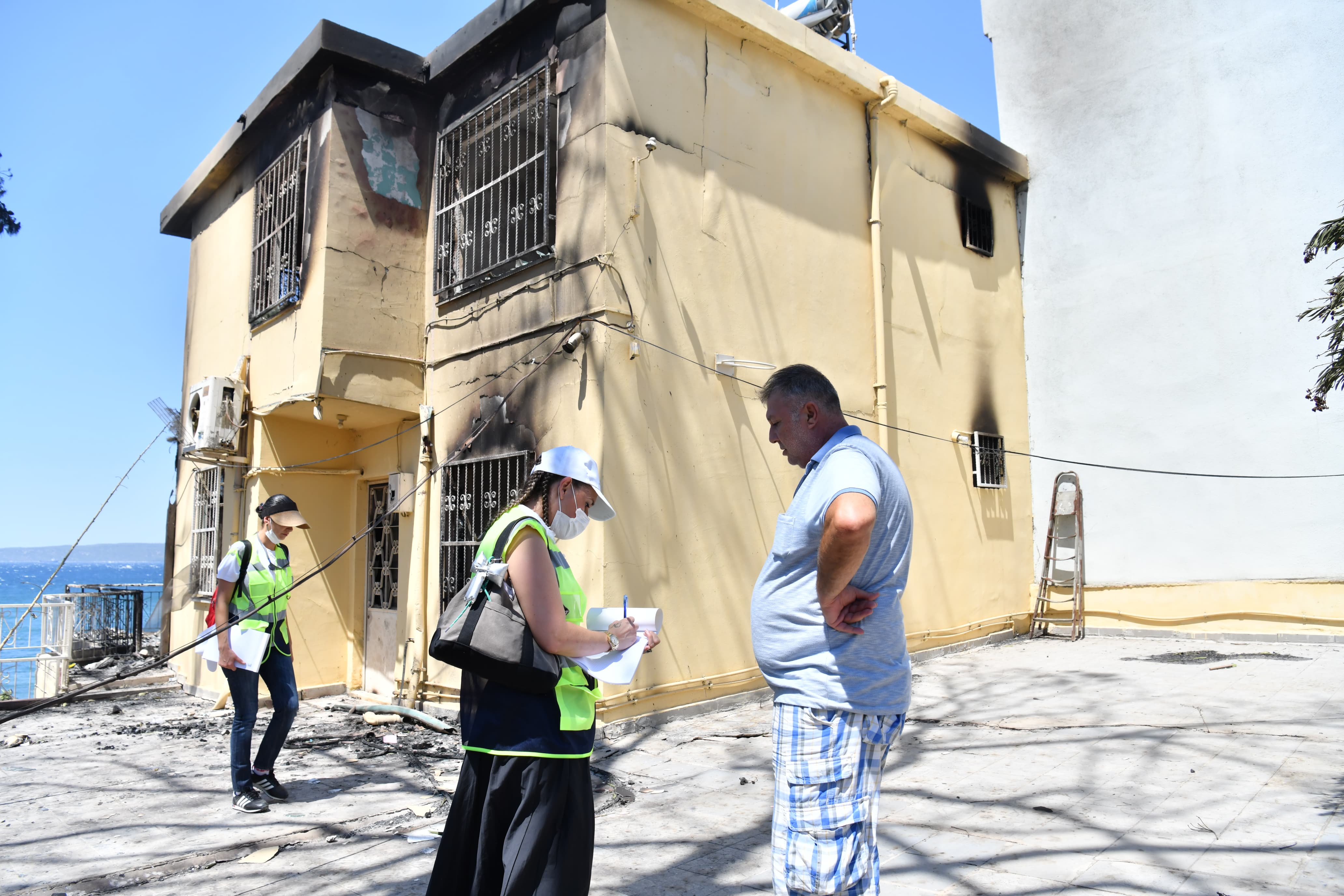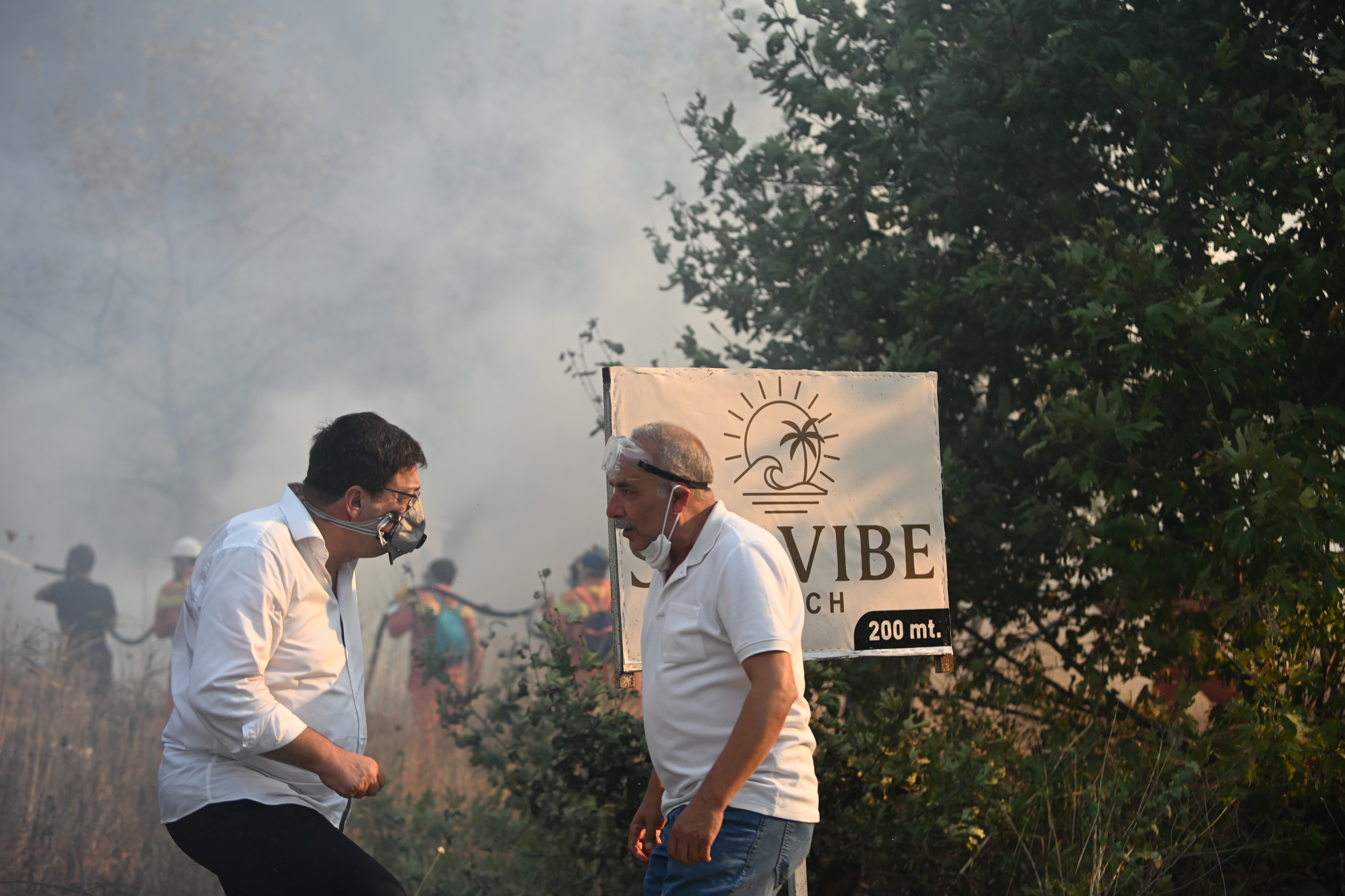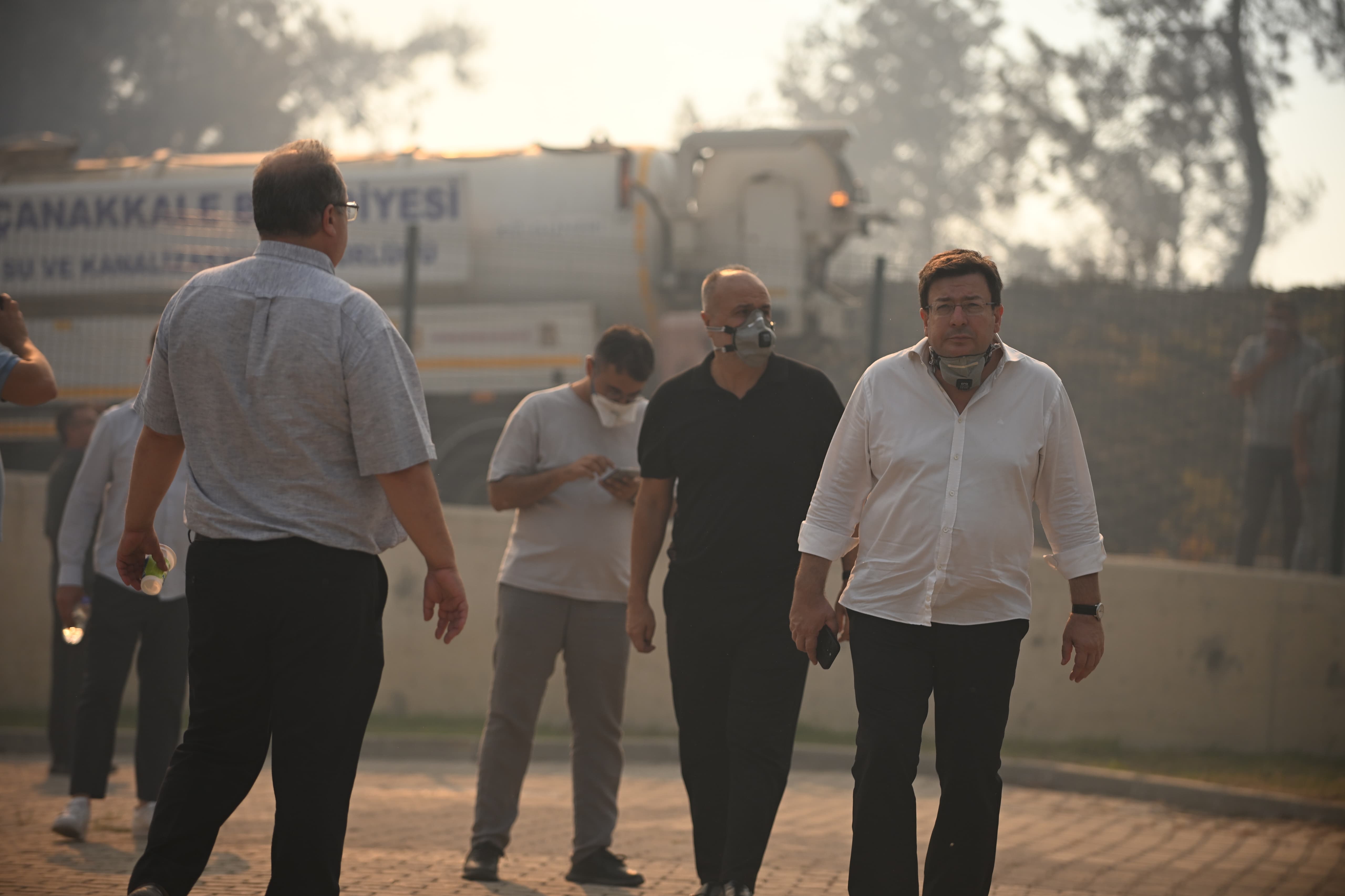 Büyük bir alanda etkili olan, özellikle Güzelyalı, Dardanos ve İntepe bölgesinde yerleşim yerlerine zarar veren yangının ilk anlarından itibaren Belediye Başkanı Muharrem Erkek de sahada bulunarak söndürme ve kurtarma çalışmalarının başında yer aldı.