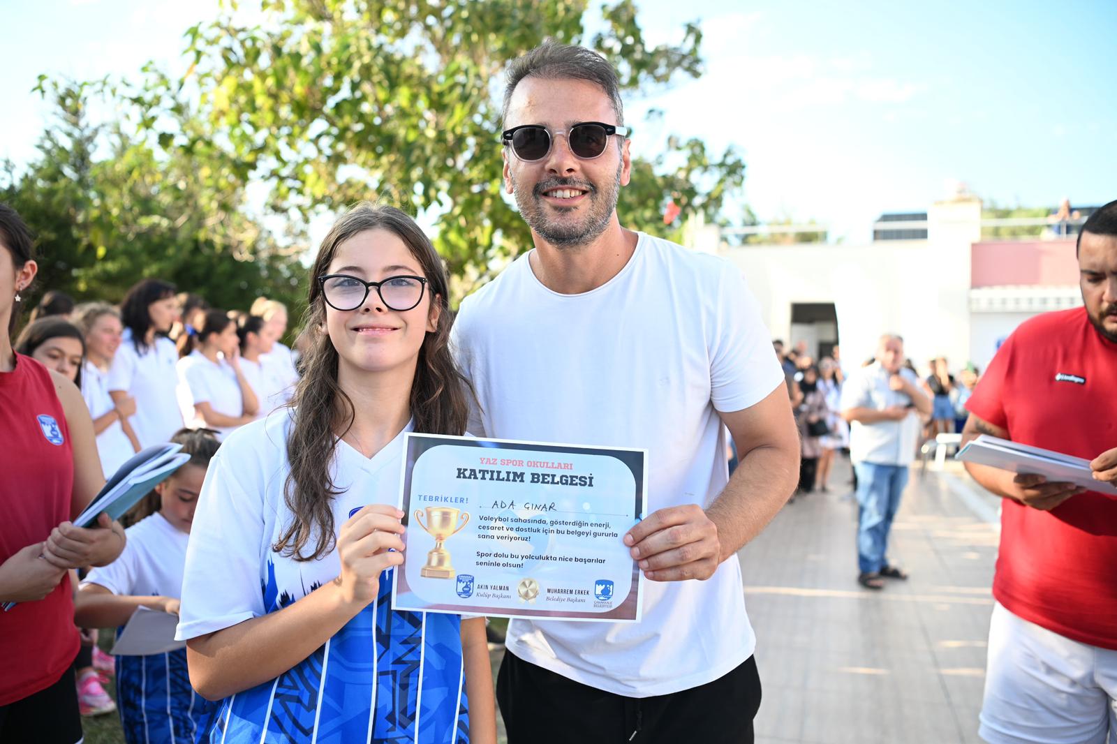 Yaz boyunca düzenlenen basketbol, yüzme, voleybol ve satranç branşlarında eğitimlerini tamamlayan 600 öğrenciye belgelerinin takdim edildiği tören, 27 Ağustos Çarşamba günü Belediyespor Tesislerinde gerçekleşti.
