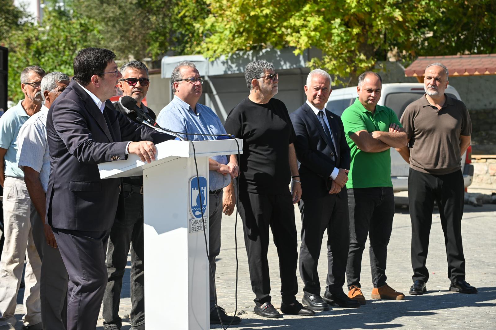 Ardından bir konuşma yapan Çanakkale Belediye Başkanı Muharrem Erkek, Çanakkale'de yaz boyunca büyük üzüntüler yaşandığını ifade ederek “Bu yaz, yaşadığımız yangınlar sonucunda Çanakkale il genelinde toplam 7 bin 100 hektar ormanımızı kaybettik. Binlerce hektar tarım arazimiz zarar gördü. Tabi bu yangınlarda yalnızca tarım arazilerimiz, ağaçlarımız değil canlılarımızı, habitatı, florayı, faunayı da kaybediyoruz. Olağanüstü kurak bir coğrafyadayız. Türkiye kuraklık haritasına baktığımızda Çanakkale ilimiz olağanüstü kurak bir bölgede yer alıyor. Onun için çok tedbirli olmalıyız. Bu kuraklık bu şekilde devam ettiği sürece, maalesef bu yangınları her yaz yaşama ihtimalimiz çok yüksek. Onun için iklim krizine, coğrafyamızın özelliklerine göre Orman Bölge Müdürlüğümüz, Üniversitemiz, Valiliğimiz, Yerel Yönetimler, Meslek Odaları hep birlikte çok önemli çalışmalara imza atmalıyız. Özellikle sayfiye yerlerine, yerleşim yerlerimize, köylerimize belli mesafelerdeki bitki yapımız, ağaç yapımız için -tabi ki bilim adamlarının, orman mühendislerimizin, uzmanların yönlendirmeleriyle- yeni uygulamalara geçmeliyiz” dedi.
