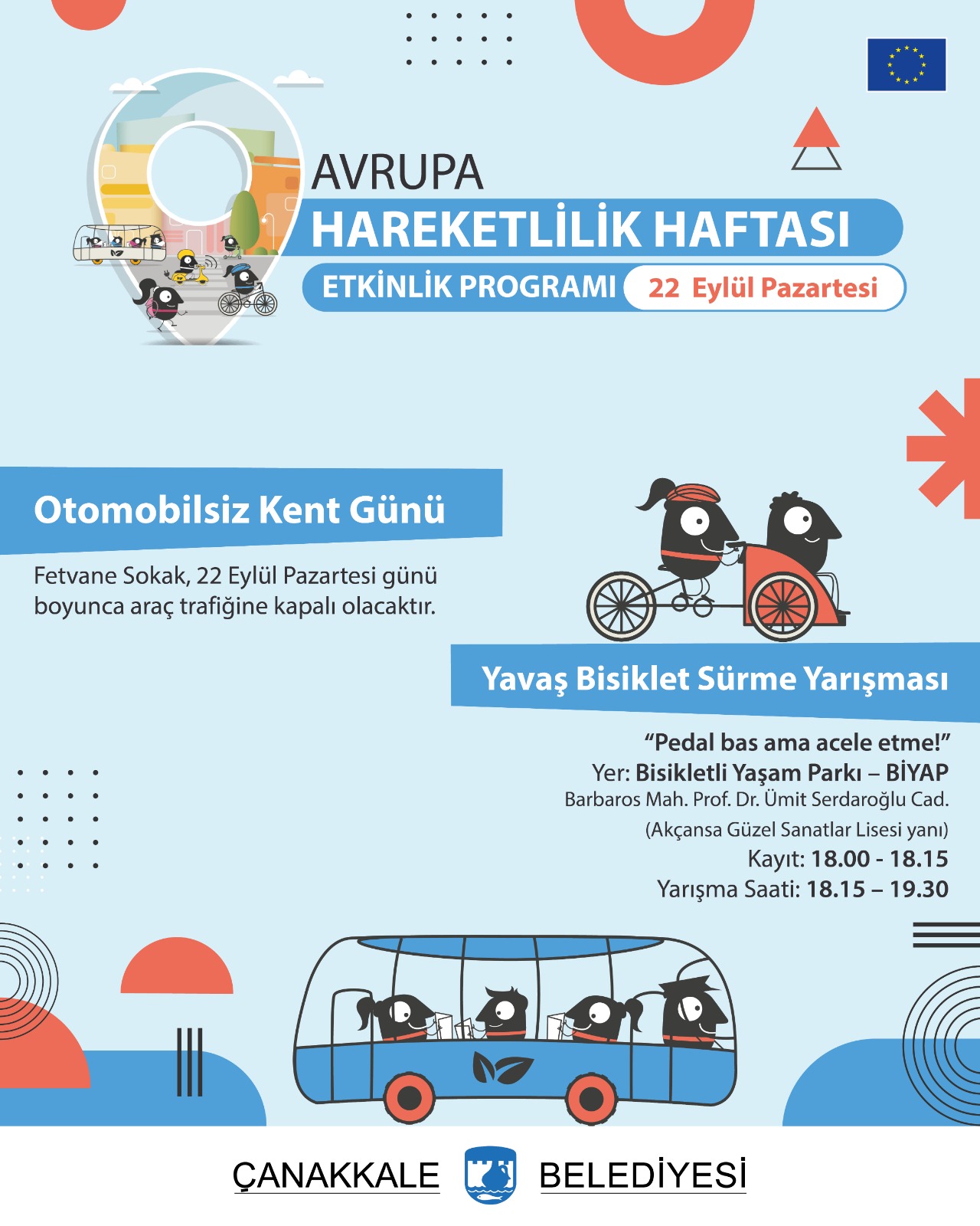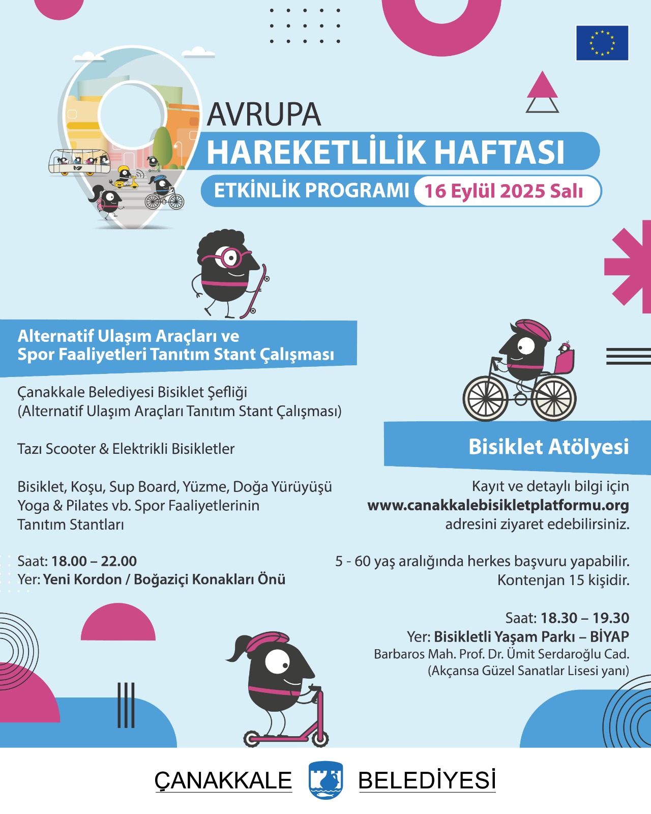 Çanakkale Belediyesinin uzun yıllardır destek verdiği Avrupa Hareketlilik Haftası etkinlikleri, “Herkes için Hareketlilik” teması ile 16-22 Eylül 2025 tarihleri arasında gerçekleştirilecek.