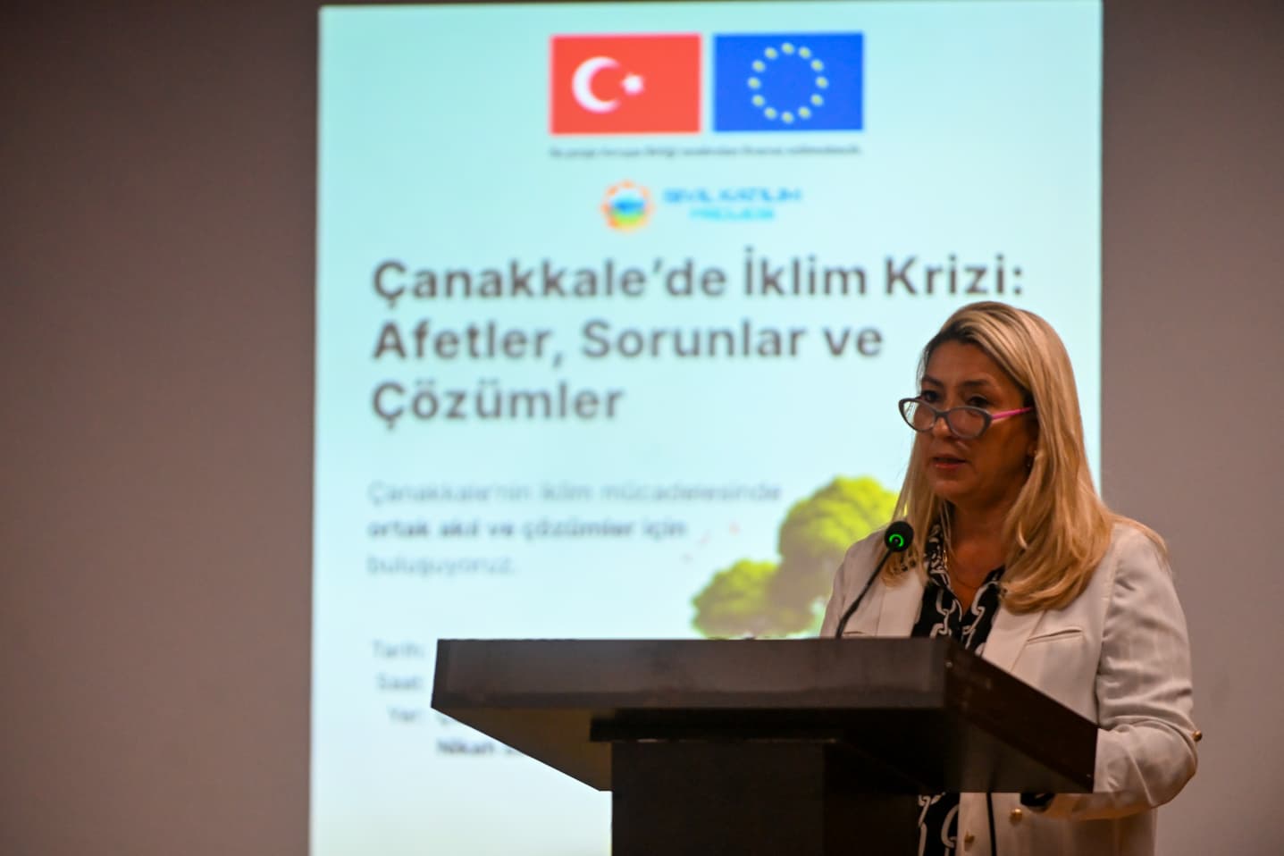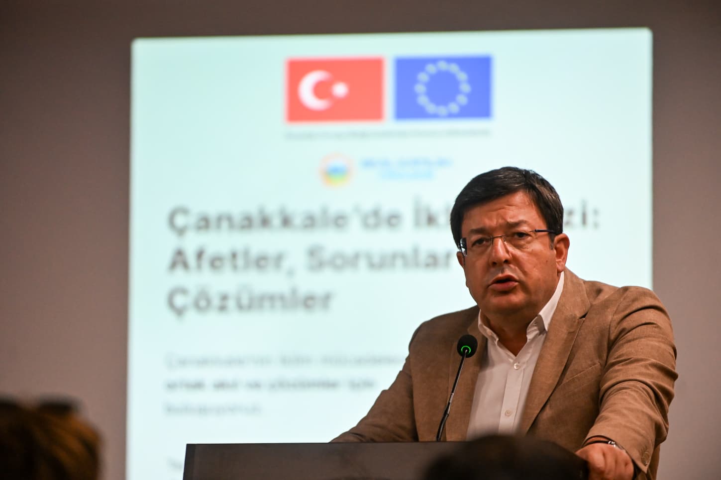 Sonrasında bir konuşma yapan Belediye Başkanı Muharrem Erkek ise, “Çanakkale Belediyesi olarak 2023'te tamamladığımız İklim Eylem Planı'nın uygulanabilmesini sağlamak, o planı güçlendirmek, sivil toplumun ve hemşehrilerimizin katılımını sağlamak, sürdürülebilir kılmak amacıyla Çanakkale İklim Eylem Grubu ve İklim Elçileri Projemiz Ocak 2025'te başladı ve devam ediyor. Bugün de o proje kapsamında önemli bir etkinlikteyiz” dedi.