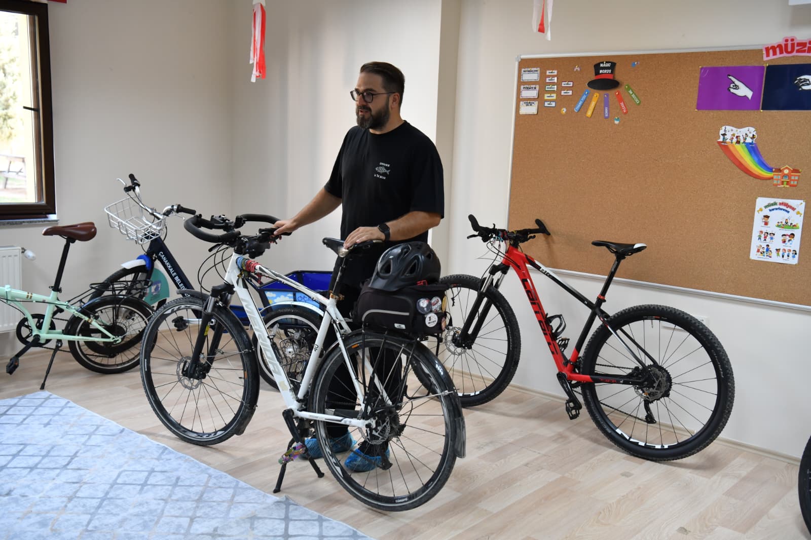Sunumunda bisiklet türlerini de minik öğrencilere tanıtan Çetin, eğitimin sonunda minik öğrencilerin sorularını yanıtladı.
