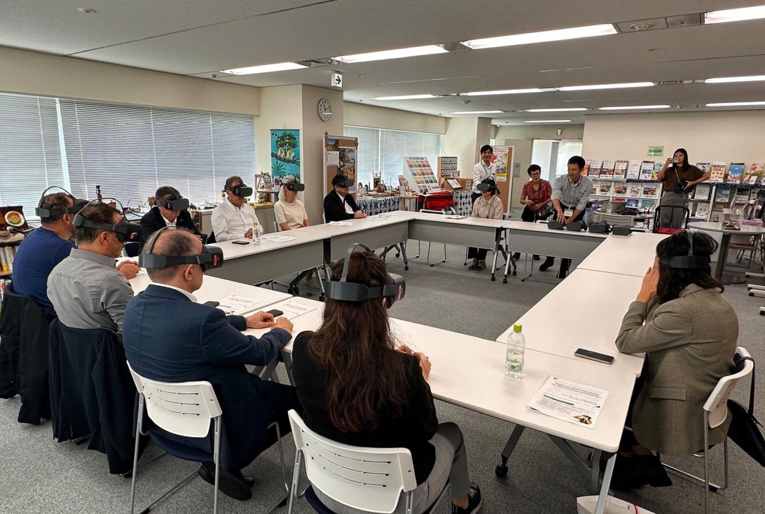 Heyet ayrıca, Sendai Şehri Kriz Yönetim Bürosu Afet Azaltma Teşvik Biriminin sunduğu VR gözlükler aracılığıyla deprem simülasyonunu deneyimledi.