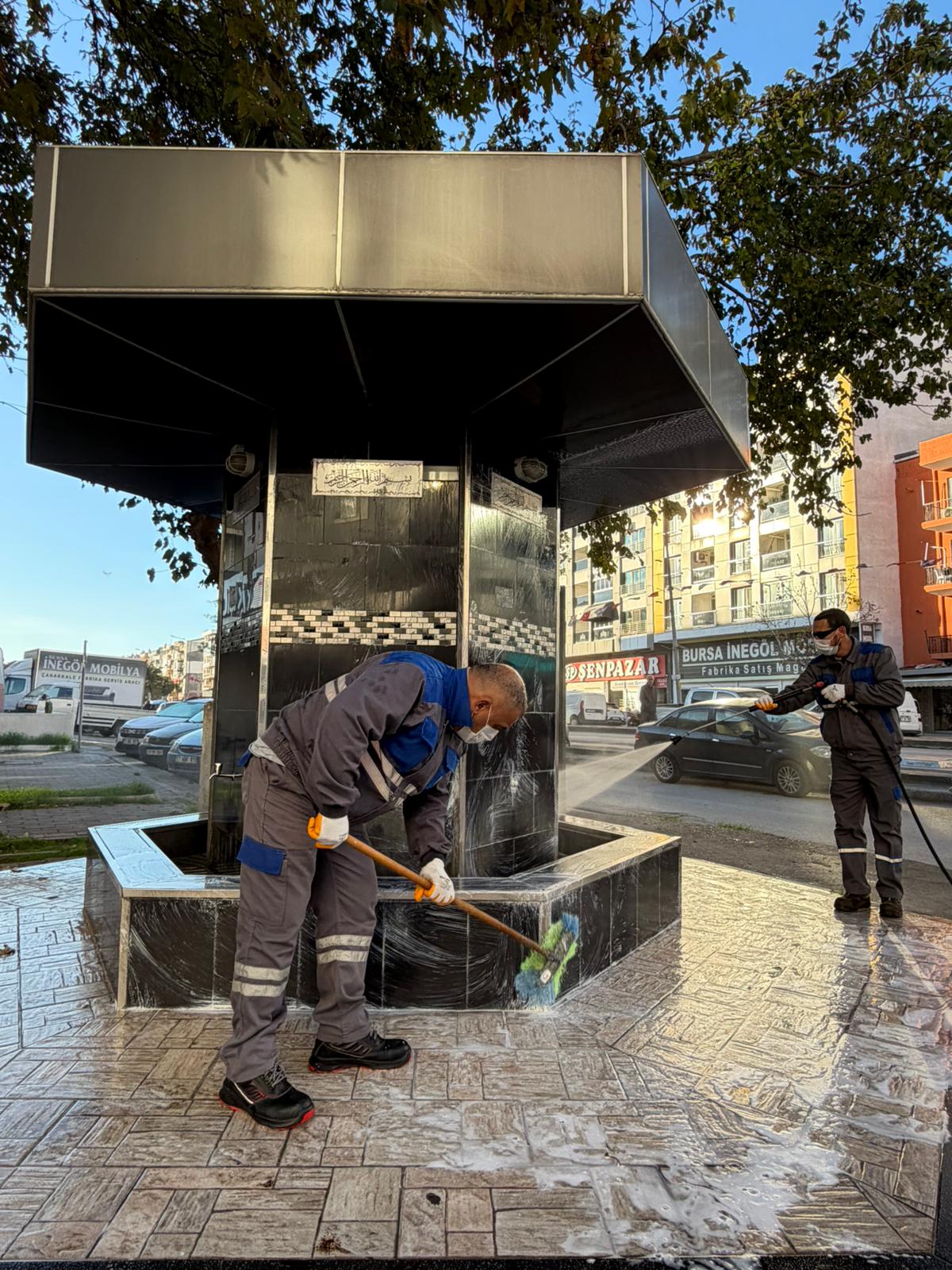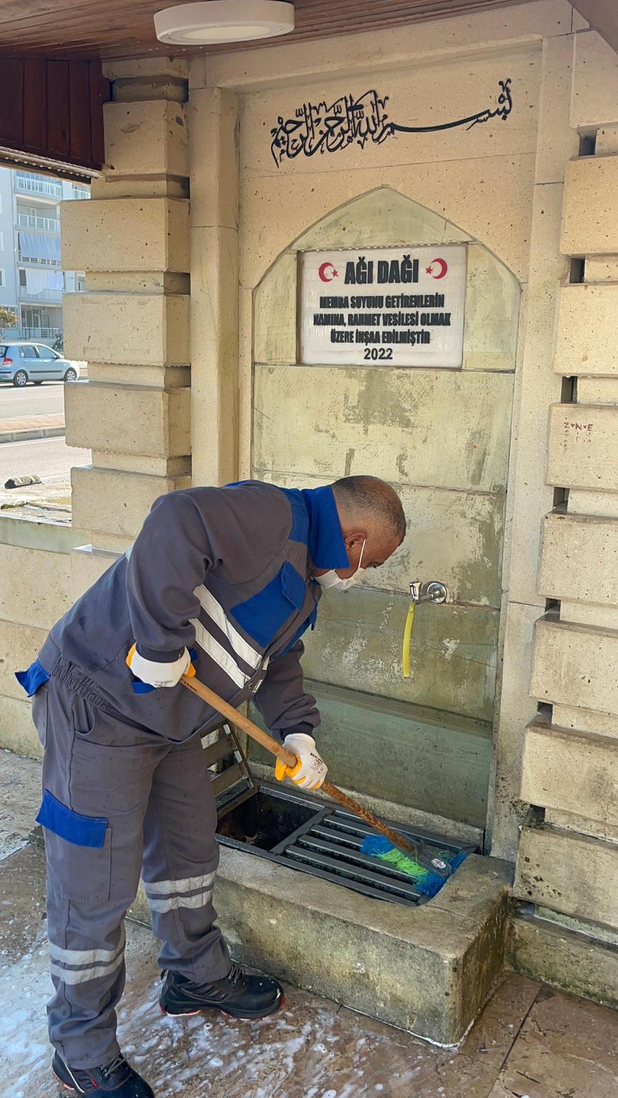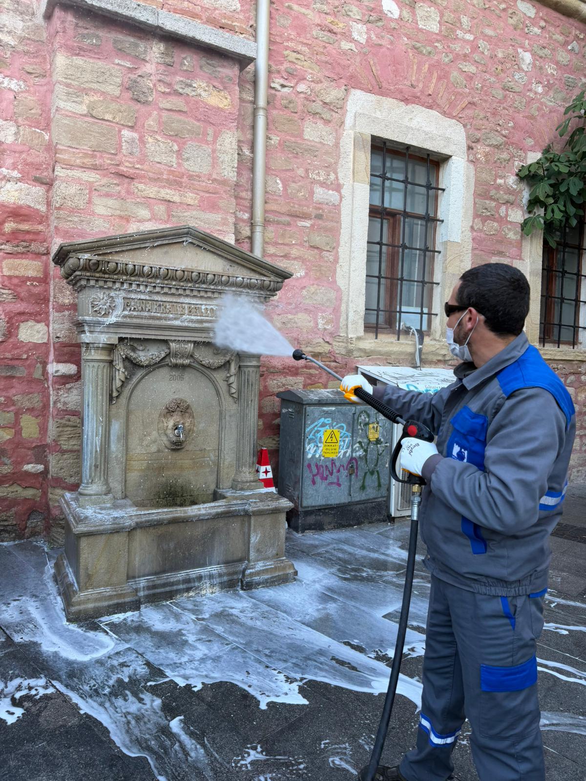 Rutin olarak düzenlenen çalışma kapsamında, çeşitli nedenler ile çeşmelerde oluşan yosunlar ve lekeler özel temizlik ekipmanları ile yıkanarak temizlendi.