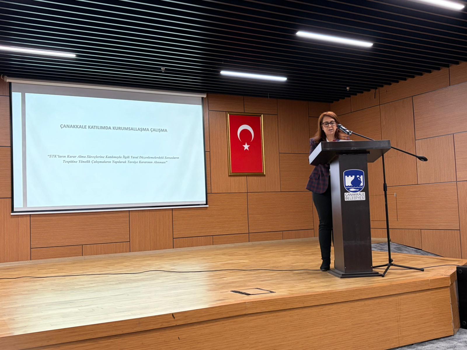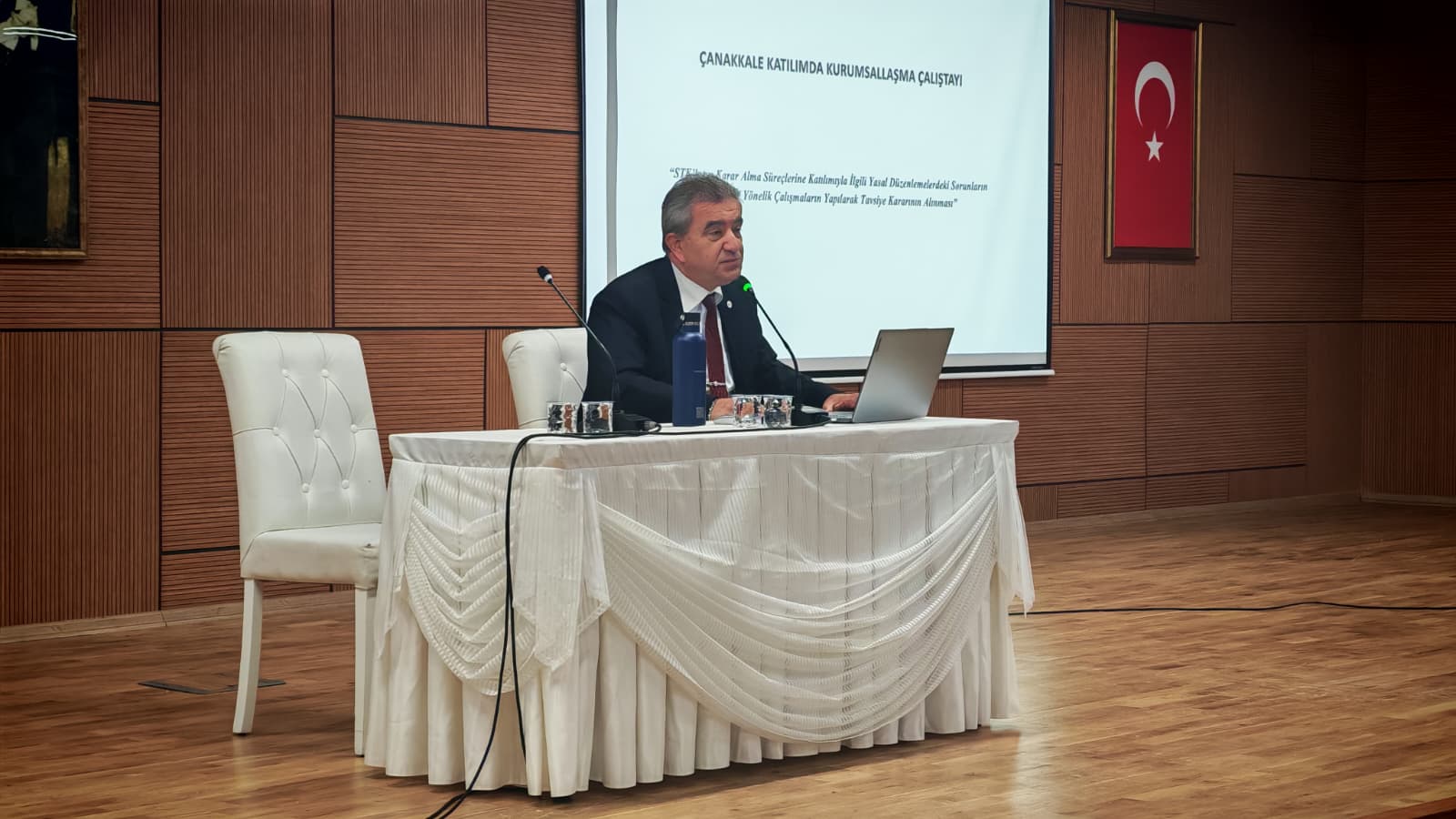 Çalıştaya Çanakkale Belediyesi'ni temsilen katılan Strateji Geliştirme Birimi personeli Mustafa Ertan, birinci oturumunda yaptığı sunumda “Türkiye'de Demokratik Yerel Yönetimin Geliştirilmesi için Sivil Katılımın Güçlendirilmesi” başlığında katılımcılara bilgi paylaşımında bulundu. Birinci oturumda yapılan sunumlarda Avukat ve Kent-Der üyesi Ali Aydın Çalıdağ “Sivil Katılım Örgütlerini Tanımlayan Kanunlar” başlığında, ÇOMÜ Sivil Toplum Kuruluşları Uygulama ve Araştırma Merkezi Müdür Yardımcısı Dr. Öğr. Üyesi Serkan Özdemir ise “Katılımda Kurumsallaşma” başlığında katılımcılara bilgi verdi.