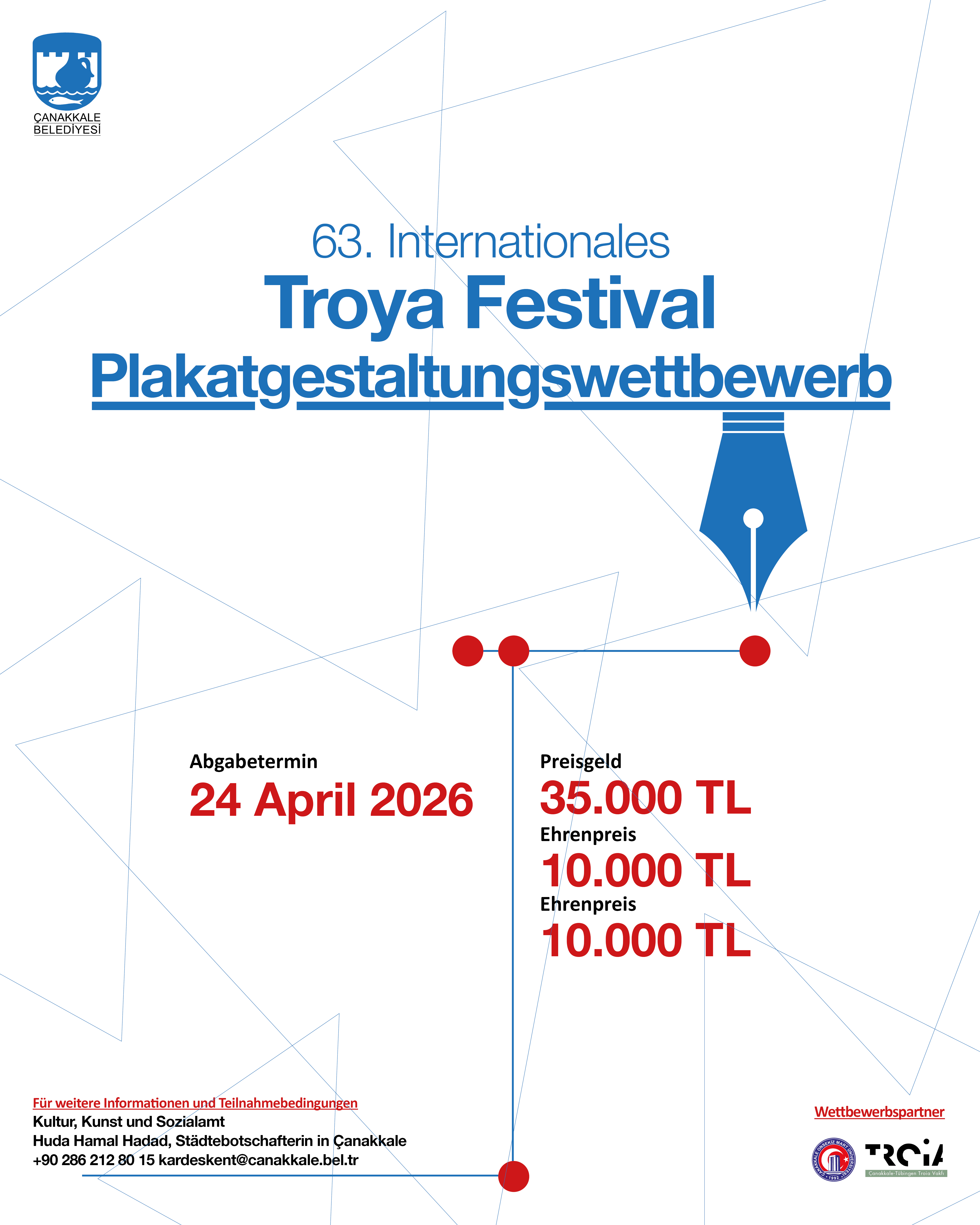 The posters deemed worthy of display will be exhibited between 9 – 13 August 2026 as part of the 63. International Troya Festival. The award ceremony will take place at the opening ceremony of the festival on August 10, 2026.