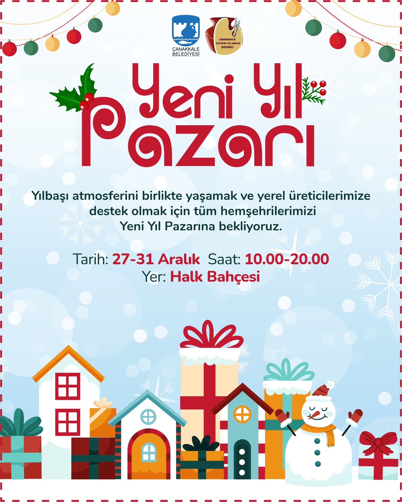 Çanakkale Belediyesinin destek verdiği Yeni Yıl Pazarı, Halk Bahçesi'nde hemşehrilerimizle buluşacak.