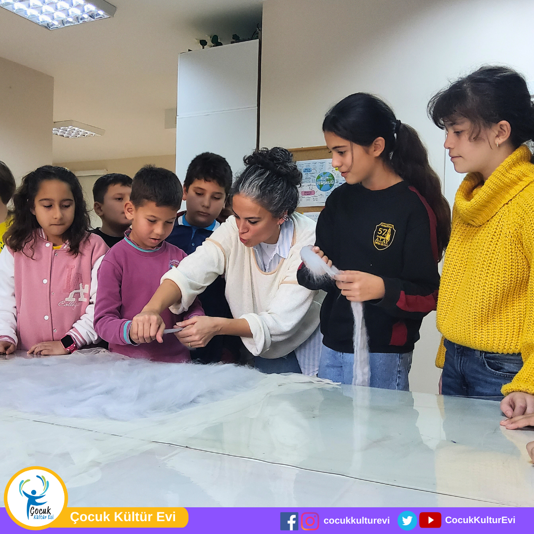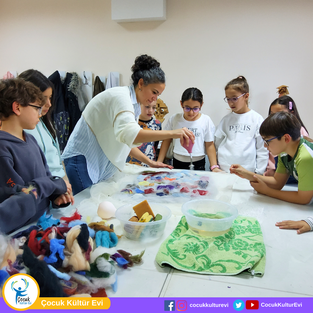 3. sınıf ve üzeri çocuklarla Çocuk Kültür Evi’nde bir araya gelen keçe sanatçısı Hande Sümer Yıldırım, keçe sanatıyla tanışma sürecinden, bu alanda aldığı eğitimlerden, ustalarından ve mesleki serüveninden bahsettiği keyifli bir söyleşi gerçekleştirdi. Yıldırım, çocuklara keçe sanatını tanıtarak farklı dönemlere ve kültürlere ait keçe örneklerini yakından inceleme fırsatı sundu. Çocukların keçe sanatı hakkındaki sorularını yanıtlayan sanatçı, katılımcı tüm çocuklarla keçe yapım sürecini uygulamalı olarak deneyimledikleri bir çalışma gerçekleştirdi. Keçenin büyülü dünyasıyla tanışan çocukların sevinci görülmeye değerdi.