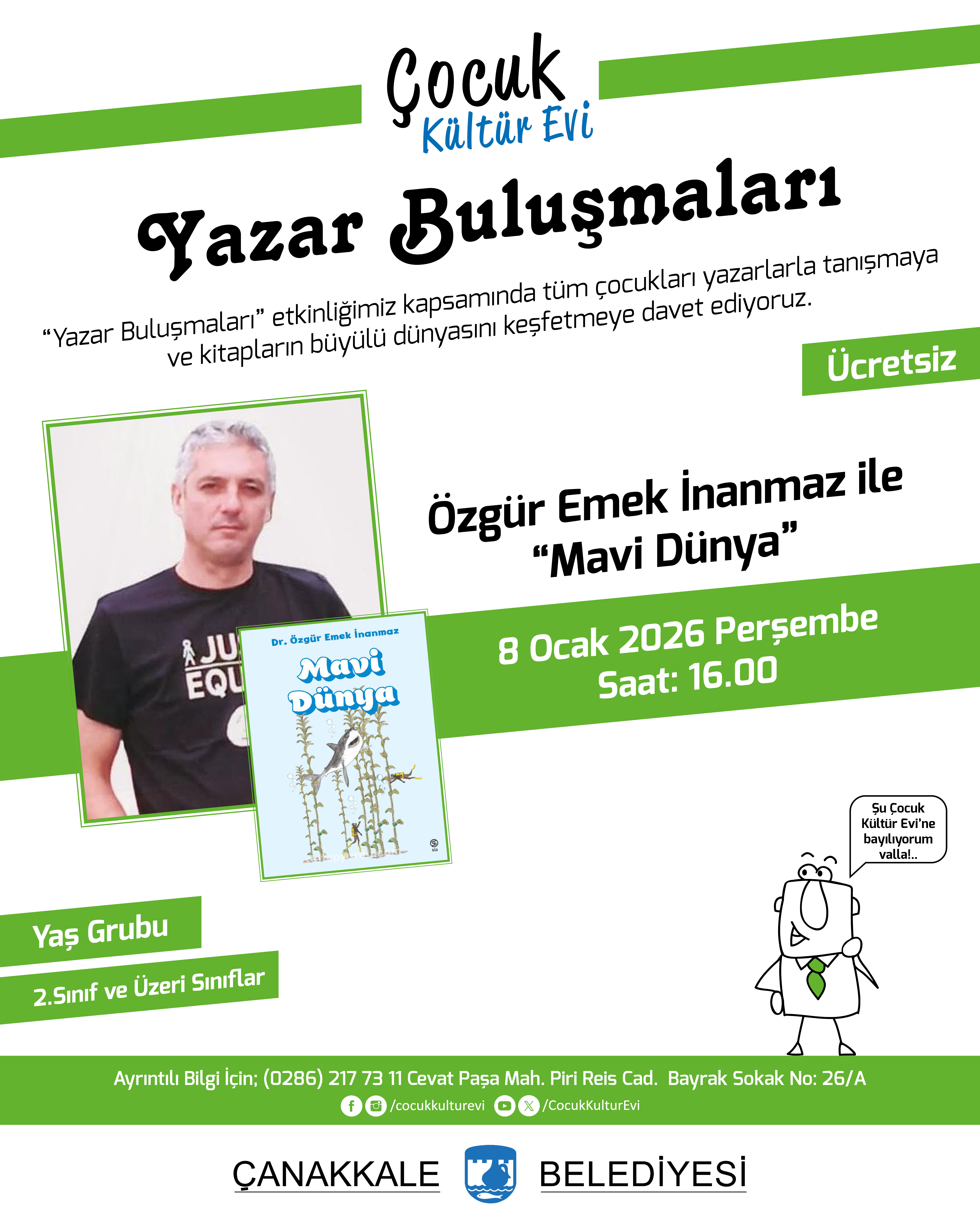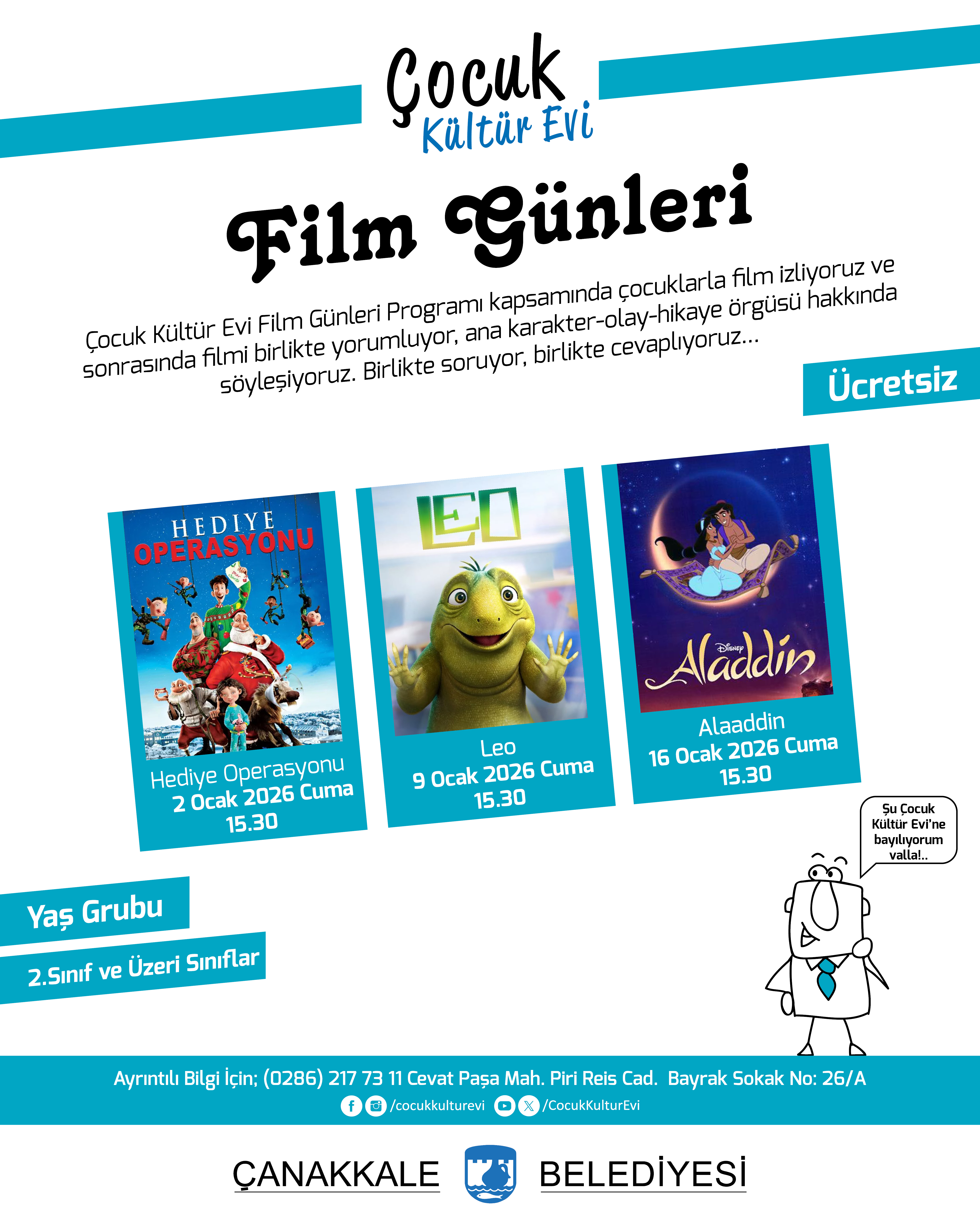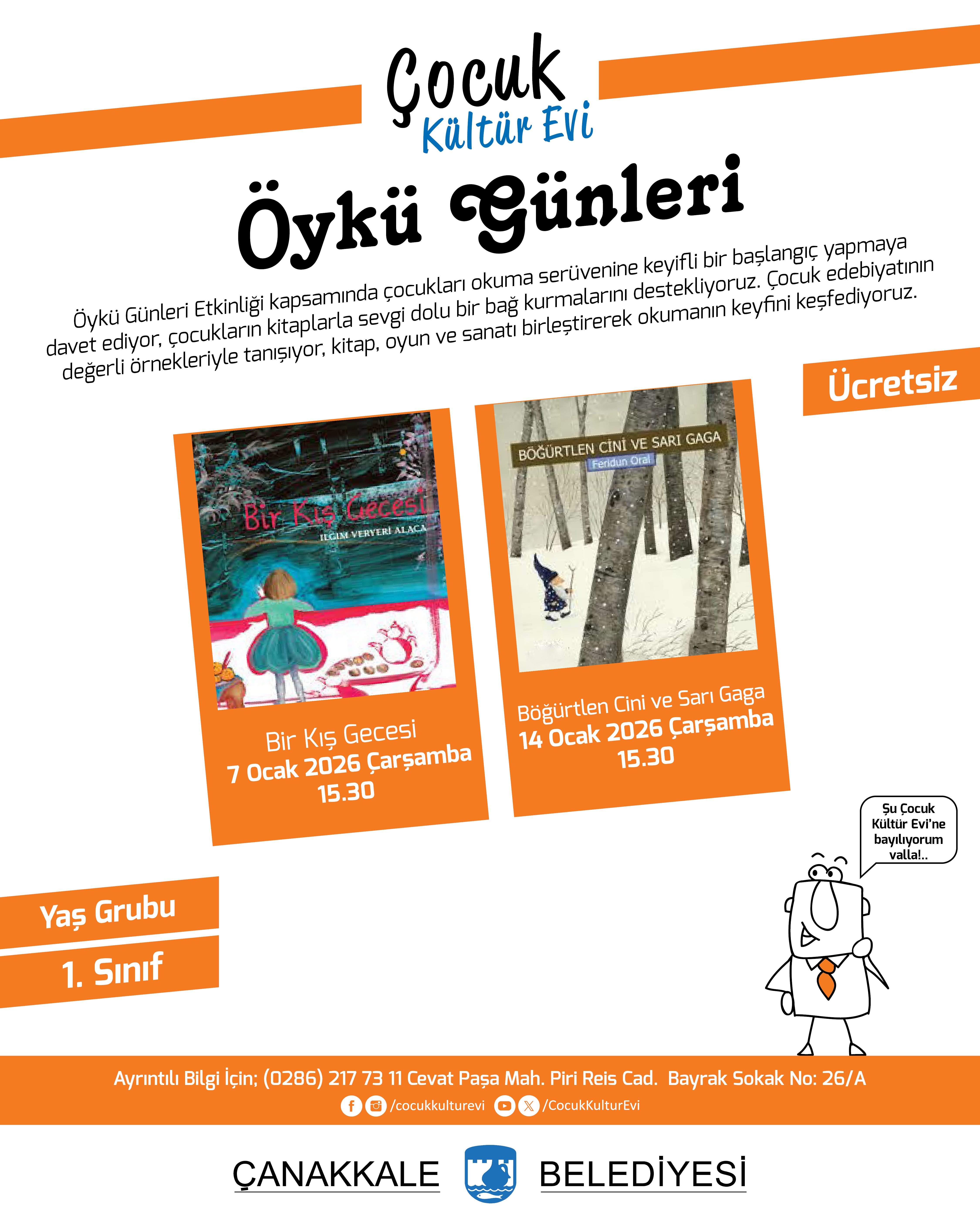 Ayrıntılı Bilgi için Çocuk Kültür Evi; (0286) 217 73 11 Cevat Paşa Mah. Piri Reis Cad. Bayrak Sokak No: 26/A