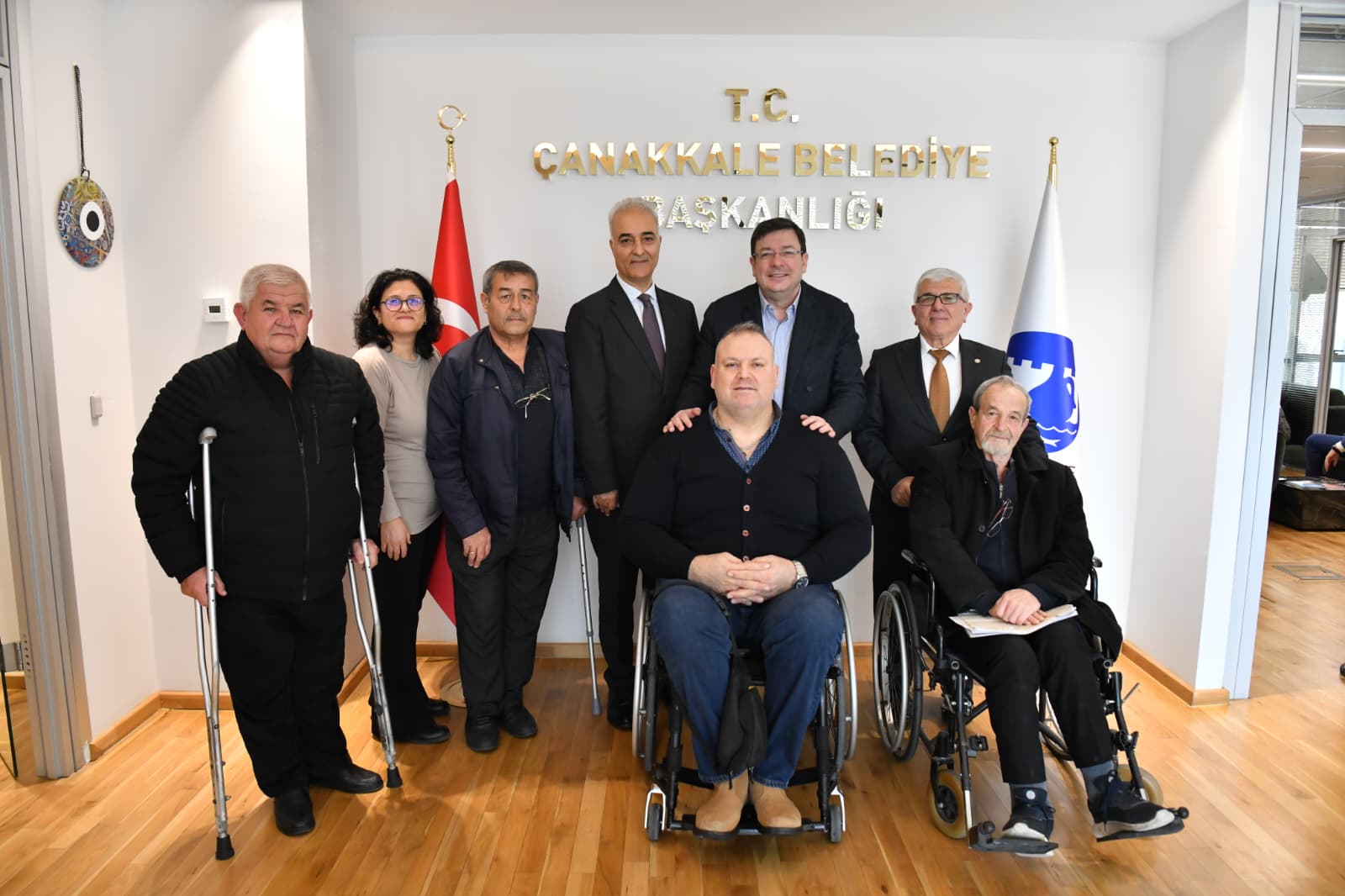 Türkiye Sakatlar Derneği Genel Başkanı Şükrü Boyraz, Dernek Genel Sekreteri Yılmaz Demirel, Çanakkale Şube Başkanı Ümit Burunlular ve yönetimini makamında ağırlayan Başkan Erkek, ziyaret nedeni ile duyduğu memnuniyeti dile getirdi.