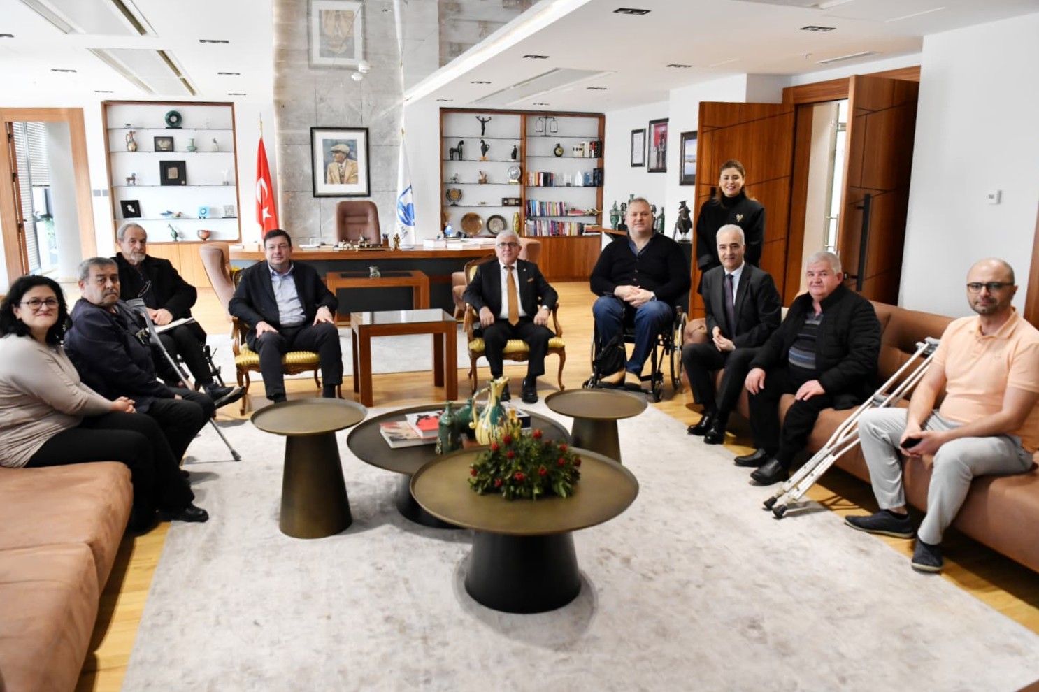 Türkiye Sakatlar Derneği Genel Başkanı Şükrü Boyraz ve beraberindeki heyet, Belediye Başkanımız Muharrem Erkek'e nezaket ziyaretinde bulundu.