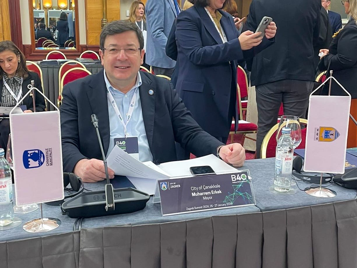 B40 Balkan Şehirleri Ağı'nın 5. Zirvesi için Zagreb'e giden Başkan Erkek'e, Çanakkale Belediyesi Meclis Üyeleri Öznur Doğangün ve Burcu Özgen Demir eşlik etti. Zirve öncesinde bir dizi temaslarda bulunan Başkan Erkek, 26 Ocak 2026 Pazartesi günü düzenlenen Yürütme Kurulu Toplantısı'na katıldı. “Sürdürülebilir Kalkınmanın İtici Gücü Olarak Şehirler” temasıyla gerçekleştirilen toplantıda, Balkan şehirleri arasında kurulabilecek iş birlikleri ve ortak projeler hakkında görüş alışverişinde bulunuldu. Üye şehirlerin belediye başkanları, yerel yönetim temsilcileri ve uzmanlarının katılımıyla gerçekleştirilen zirve, toplantılar ve çeşitli programların ardından sona erdi.