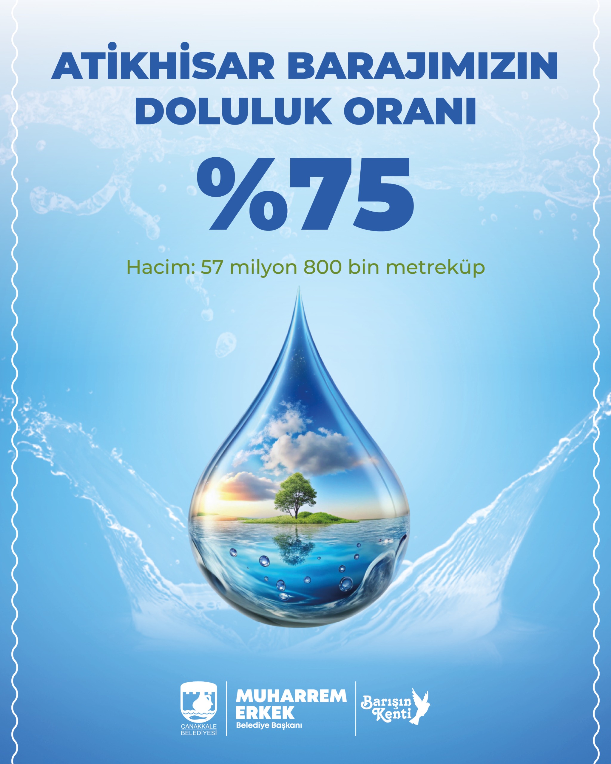 Kentin tek içme ve kullanma suyu kaynağı olan Atikhisar Barajımızın doluluk oranı %75’dir. (Hacim: 57 milyon 800 bin metreküp)