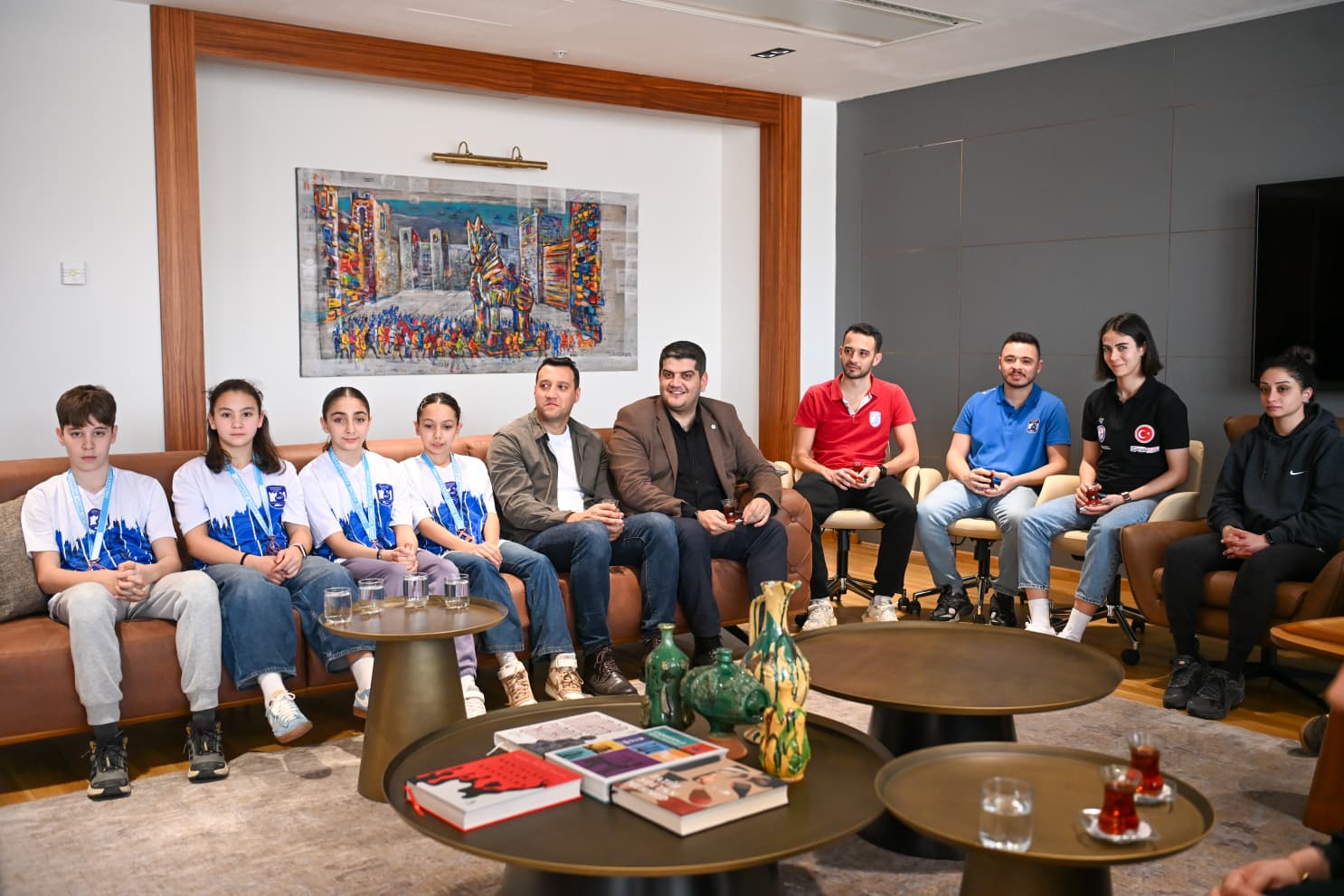 2026 Türkiye Açık Su Yüzme Kış Şampiyonası (14+), 11, 12,13 Yaş Gelişim Grubu Yarışmalarından büyük başarılarla dönen Çanakkale Belediyespor sporcularımız,  Çanakkale Belediyespor Kulübü Başkanımız Akın Yalman, kulüp yönetimi, Baş Antrenörümüz Nehir Çakır, A Takım Antrenörümüz Nursena Ortaç, Altyapı Sorumlu Antrenörlerimiz Toprak Akkaya ve Nail Ülkü, Belediye Başkanımız Muharrem Erkek'i makamında ziyaret etti.