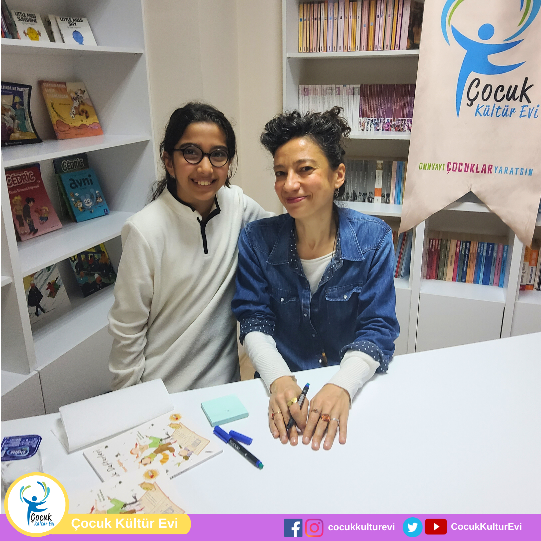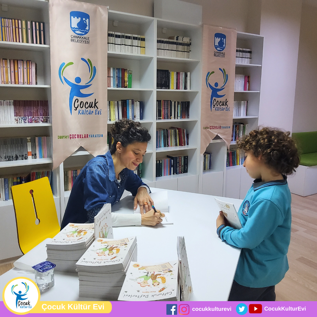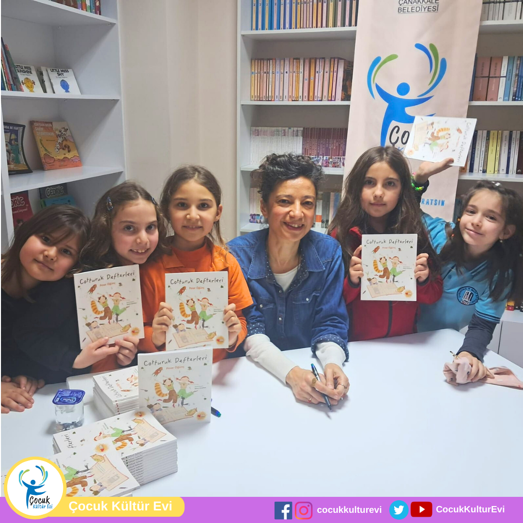 Soru ve cevaplarla zenginleşen keyifli sohbetin ardından yazar, Çocuk Kültür Evi tarafından etkinliğe katılan tüm çocuklara armağan edilen kitabı “Cotturuk Defterleri”ni imzaladı.