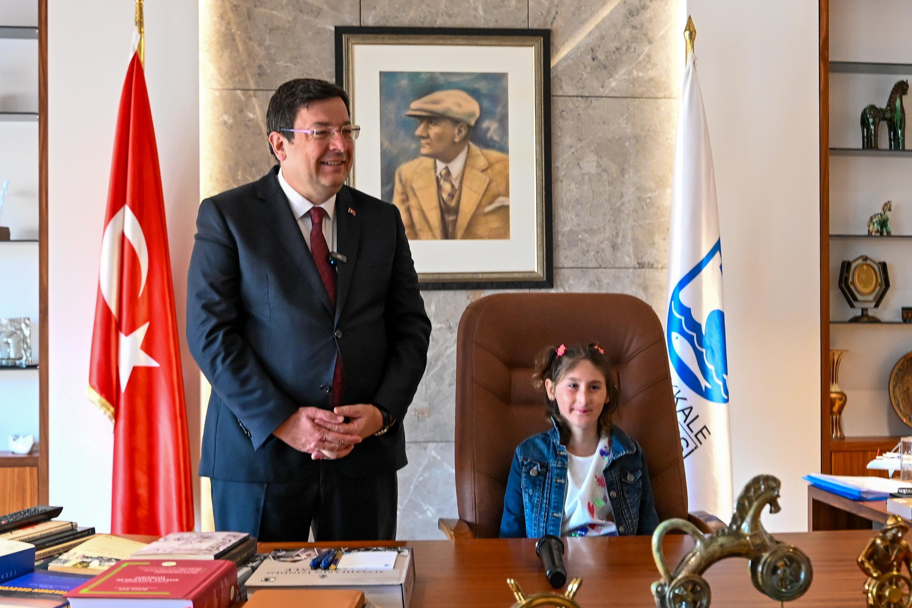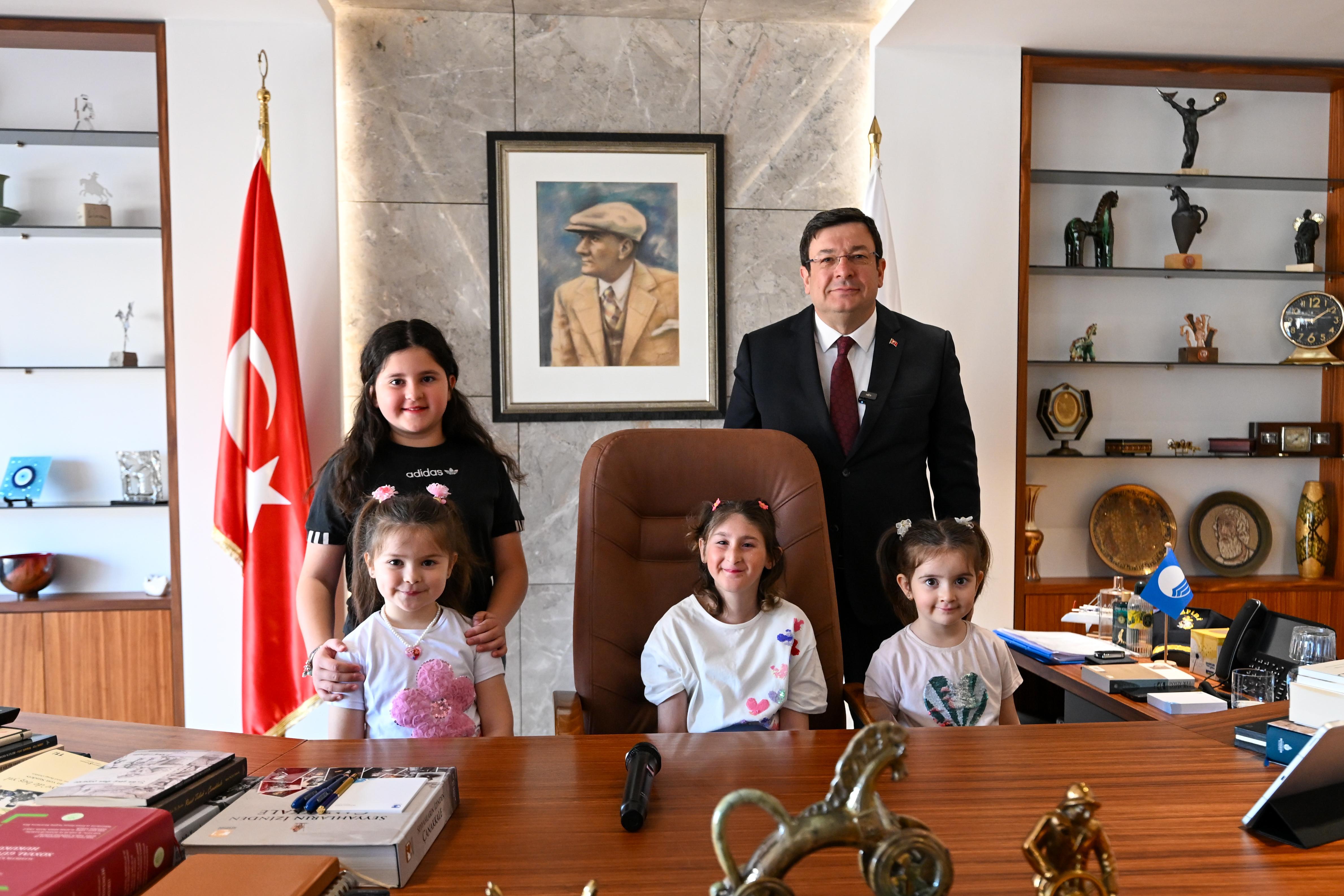 Başkanlık koltuğunu bir süreliğine devralan minik Güneş ve kardeşleri de hem bayramla ilgili görüşlerini paylaştı hem de kente ilişkin öneri ve isteklerini dile getirdi. Günün anlam ve önemini ortaya koyan anlamlı program, Başkan Erkek'in çocuklara hediye takdimi ve hatıra fotoğrafı çekilmesi ile sona erdi.