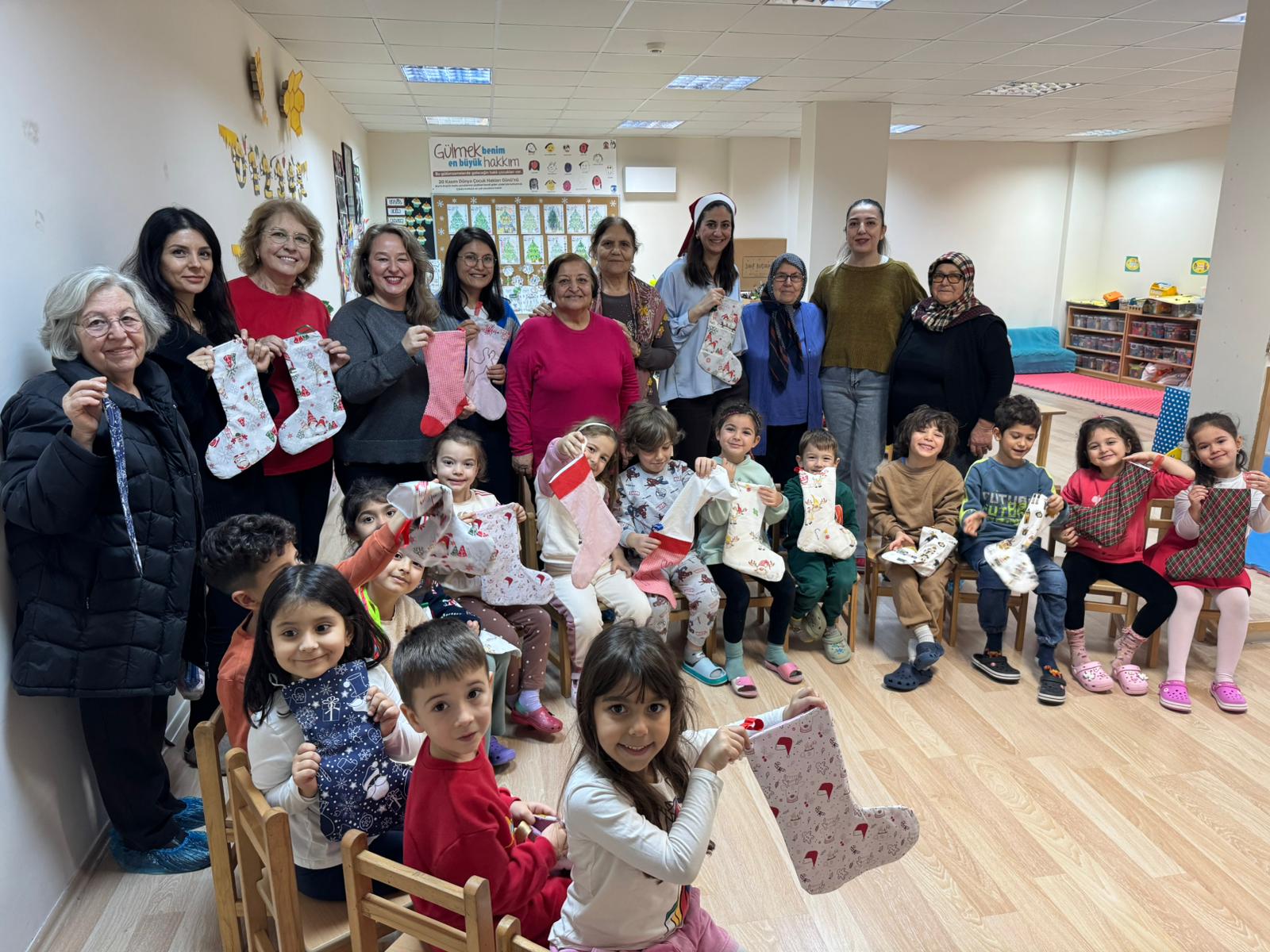 Yeni yıl öncesinde düzenlenen ziyarette Cevatpaşa ve Barbaros Atam Kreş’in minik öğrencileri ile bir araya gelen merkez katılımcıları, miniklerin ve öğretmenlerinin yeni yılını kutlayarak kırkyama atölyesinde yaptıkları yeni yıl çoraplarını hediye ettiler. Keyifli bir sohbet ortamında geçen ziyaretler, Altın Yıllar Merkez katılımcılarının minik öğrenciler ve öğretmenleri ile birlikte çektirdiği yeni yıl fotoğrafları ile sona erdi.