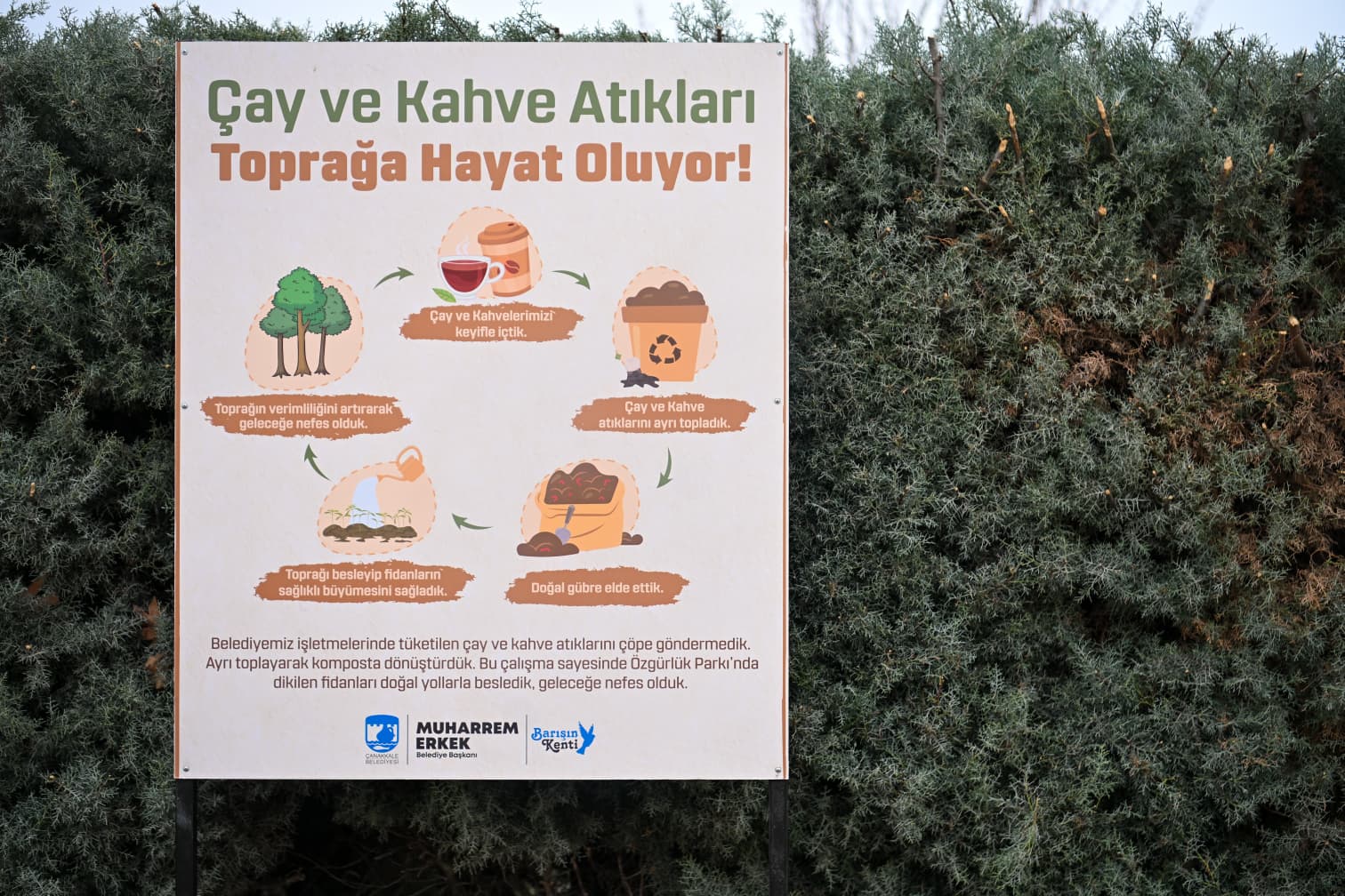 Çanakkale Belediyesi İklim Değişikliği ve Sıfır Atık Müdürlüğü ile Park ve Bahçeler Müdürlüğü ortaklığında hazırlanan proje kapsamında çay ve kahve posalarından elde edilen kompostlarla bitki dikim etkinliği düzenlendi.