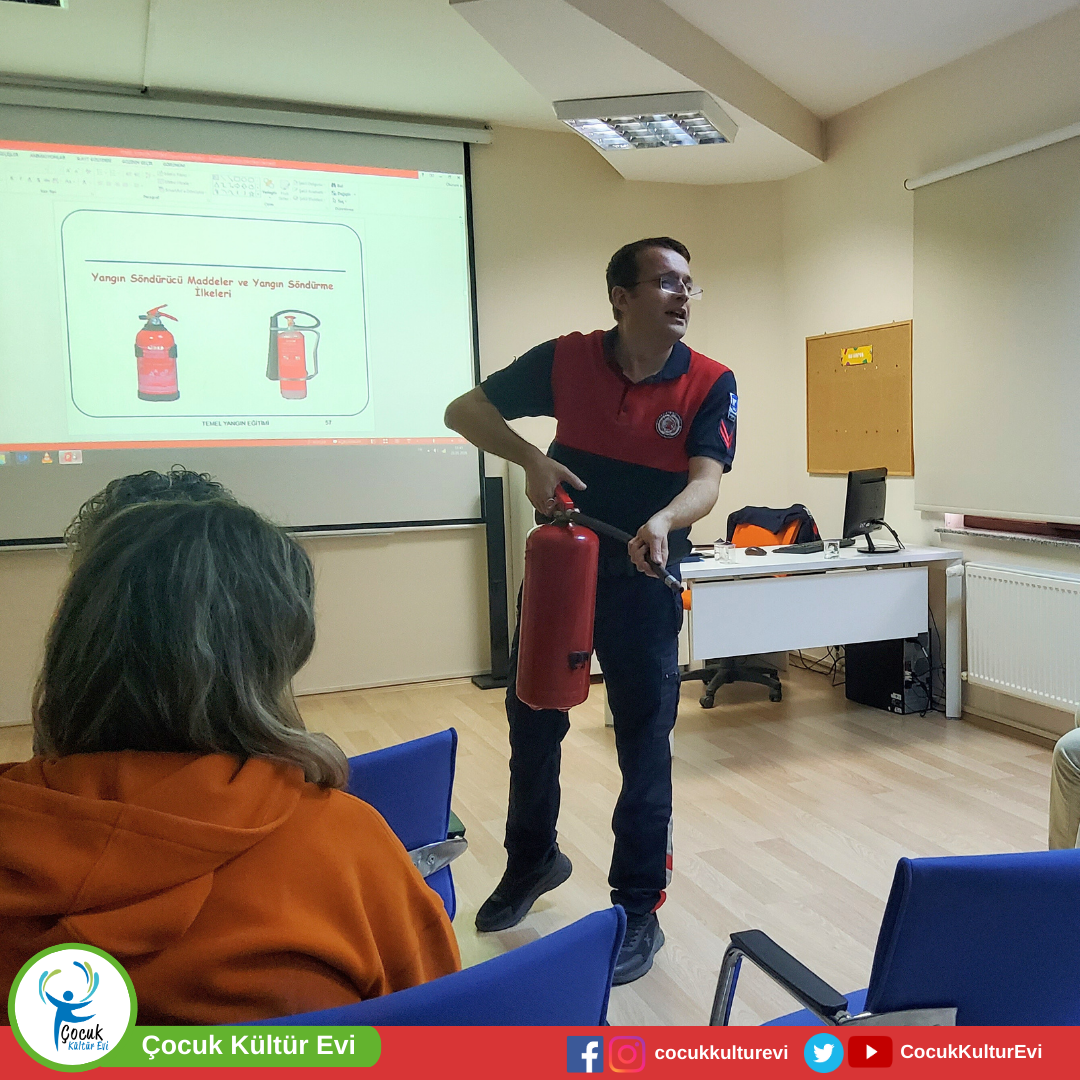 Program kapsamında gerçekleştirilen, “Temel Yangın Eğitimi” ile yangın nedir, yangın sınıfları, söndürme maddeleri ve cihazları, yangın güvenlik ekipleri ve önlemleri ile acil durum ekipleri ve hareket tarzı gibi önemli konular ele alındı. Çocuk Kültür Evi eğitmenlerinin ve personelinin ilgiyle takip ettiği eğitim, Çanakkale Belediyesi İtfaiye Müdürlüğü Eğitim Sorumlusu Selim Can tarafından gerçekleştirildi.