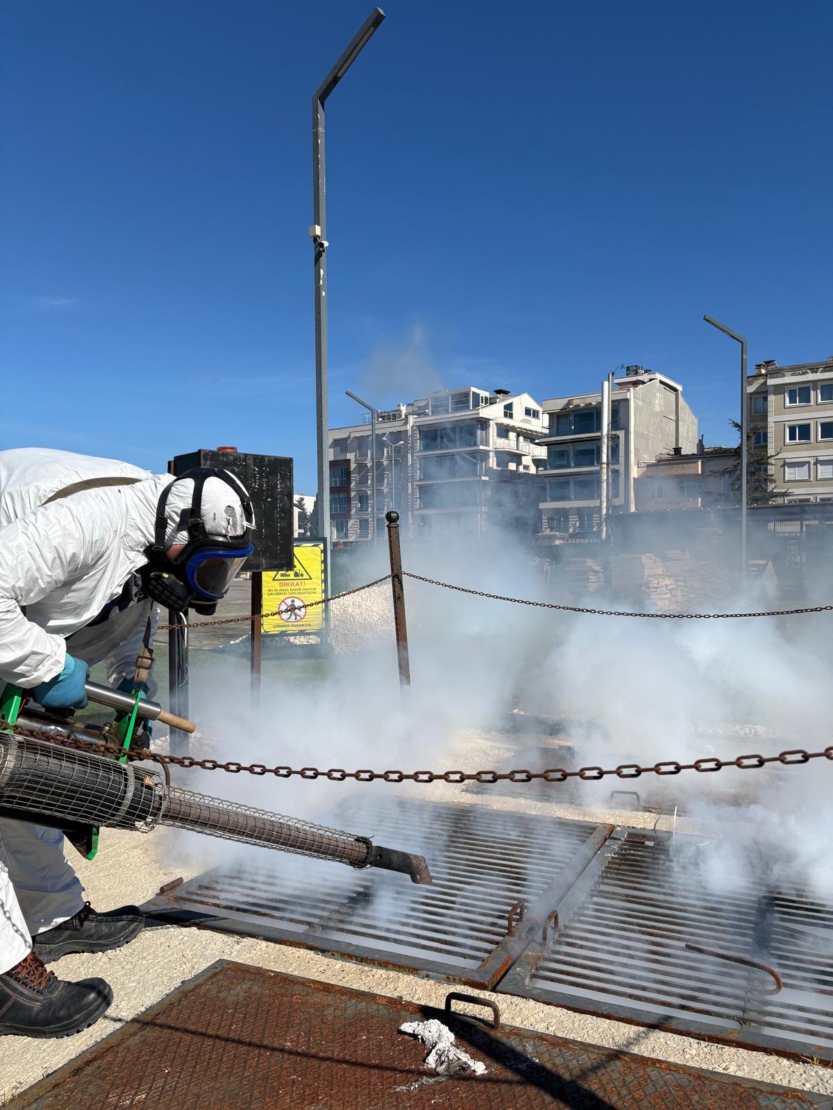 Halk sağlığını korumak ve yaz aylarını daha konforlu geçirmek amacıyla kent genelinde larva ile mücadele çalışmaları titizlikle yürütülmekte olup son sistem soğuk sisleme cihazı ile biyosidal ürün uygulamaları gerçekleştiriliyor.