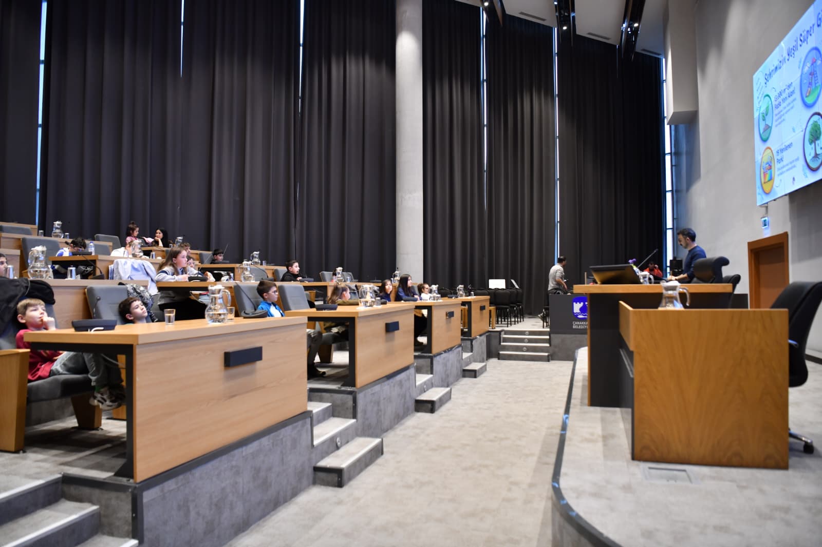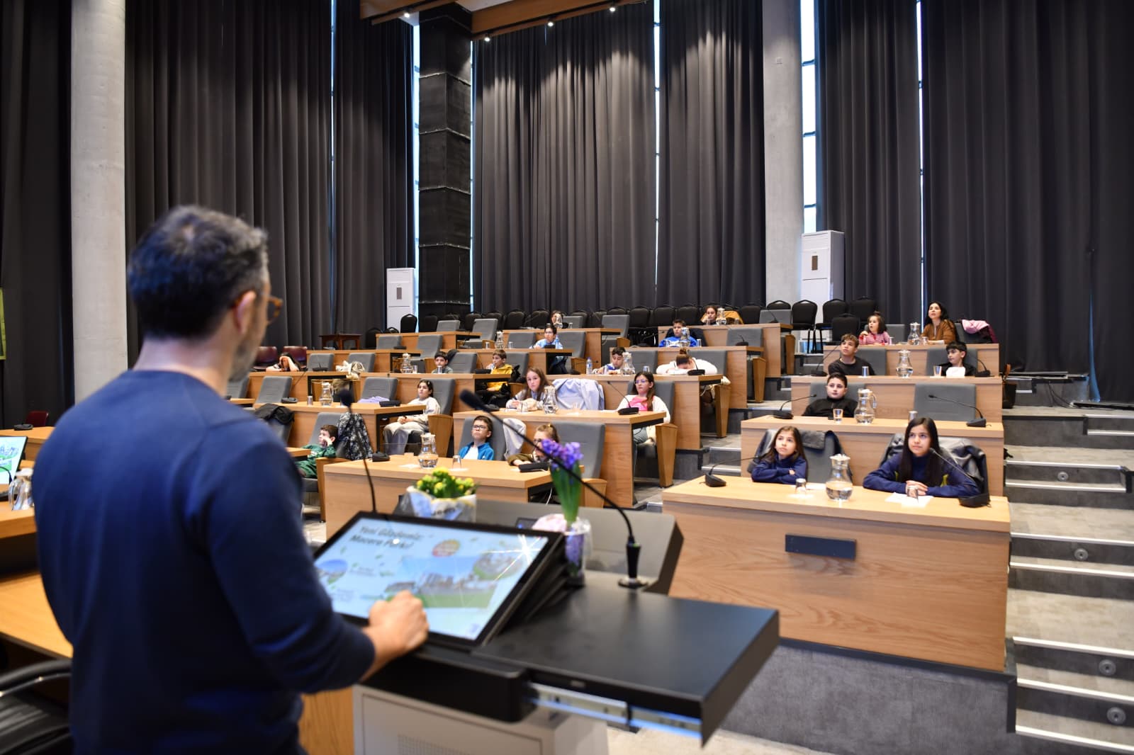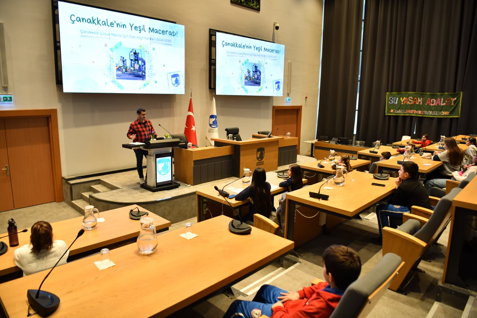 Çanakkale Belediyesi tarafından, çocukların karar süreçlerine katılabilmeleri ve fikirlerini özgürce ifade edebilmeleri amacıyla kurulan Çocuk Meclisi, Nisan ayı genel kurul toplantısı için bir araya geldi. 1 Nisan 2026 Çarşamba günü Belediye Meclis Salonu'nda gerçekleştirilen toplantıda, gündem konularının görüşülmesinin ardından Park ve Bahçeler Müdürü Mustafa Hilmi Salbaş, kent genelindeki park ve bahçeler hakkında meclis üyelerine bilgilendirme sunumu gerçekleştirdi.