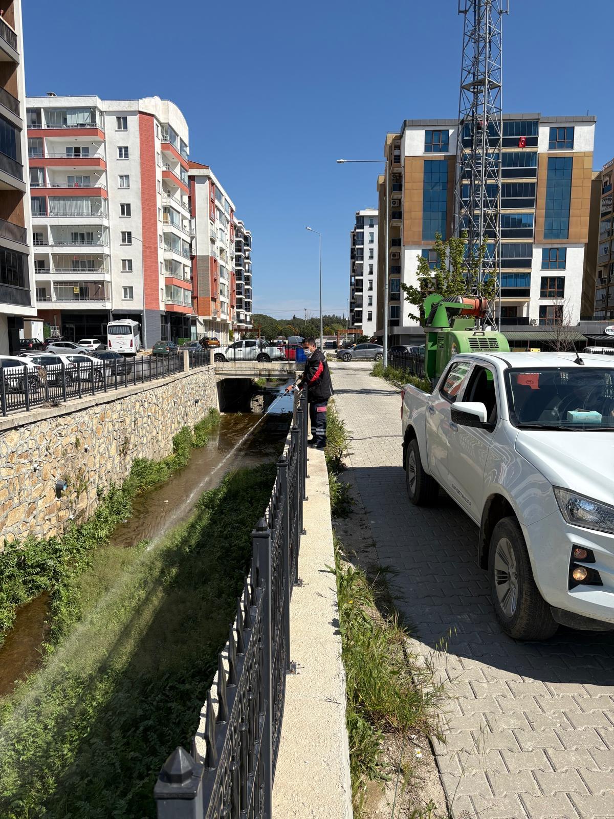 Hava sıcaklarının artması ile birlikte sivrisinek ve haşere popülasyonunda oluşabilecek artışı kontrol altına almak amacıyla dere yataklarında larvasit uygulamaları devam ediyor.