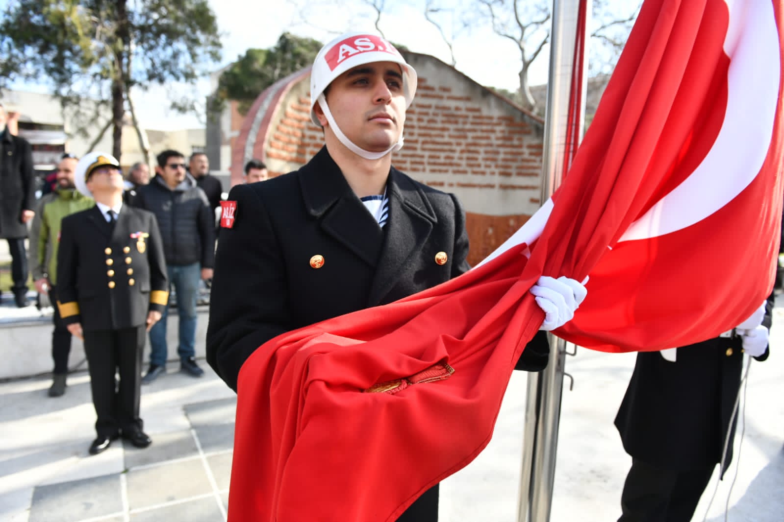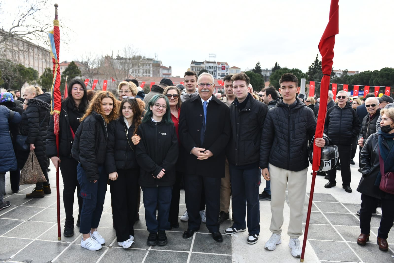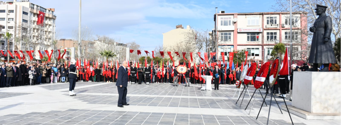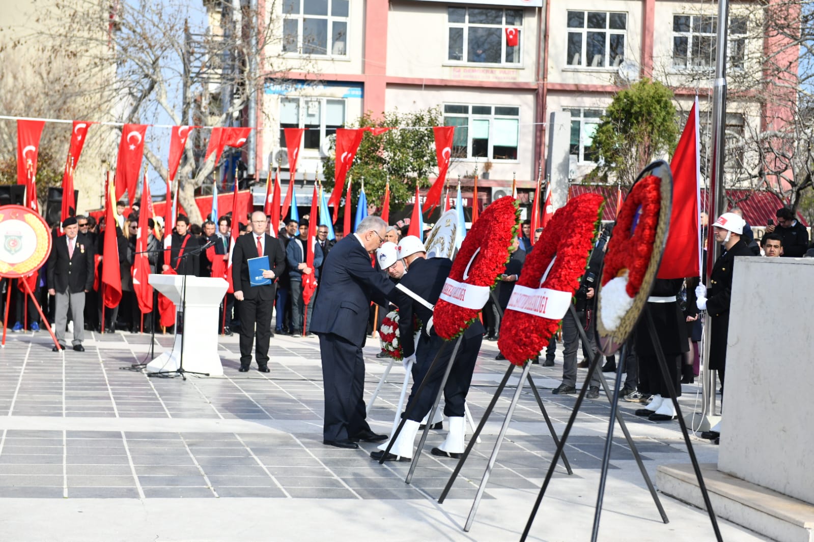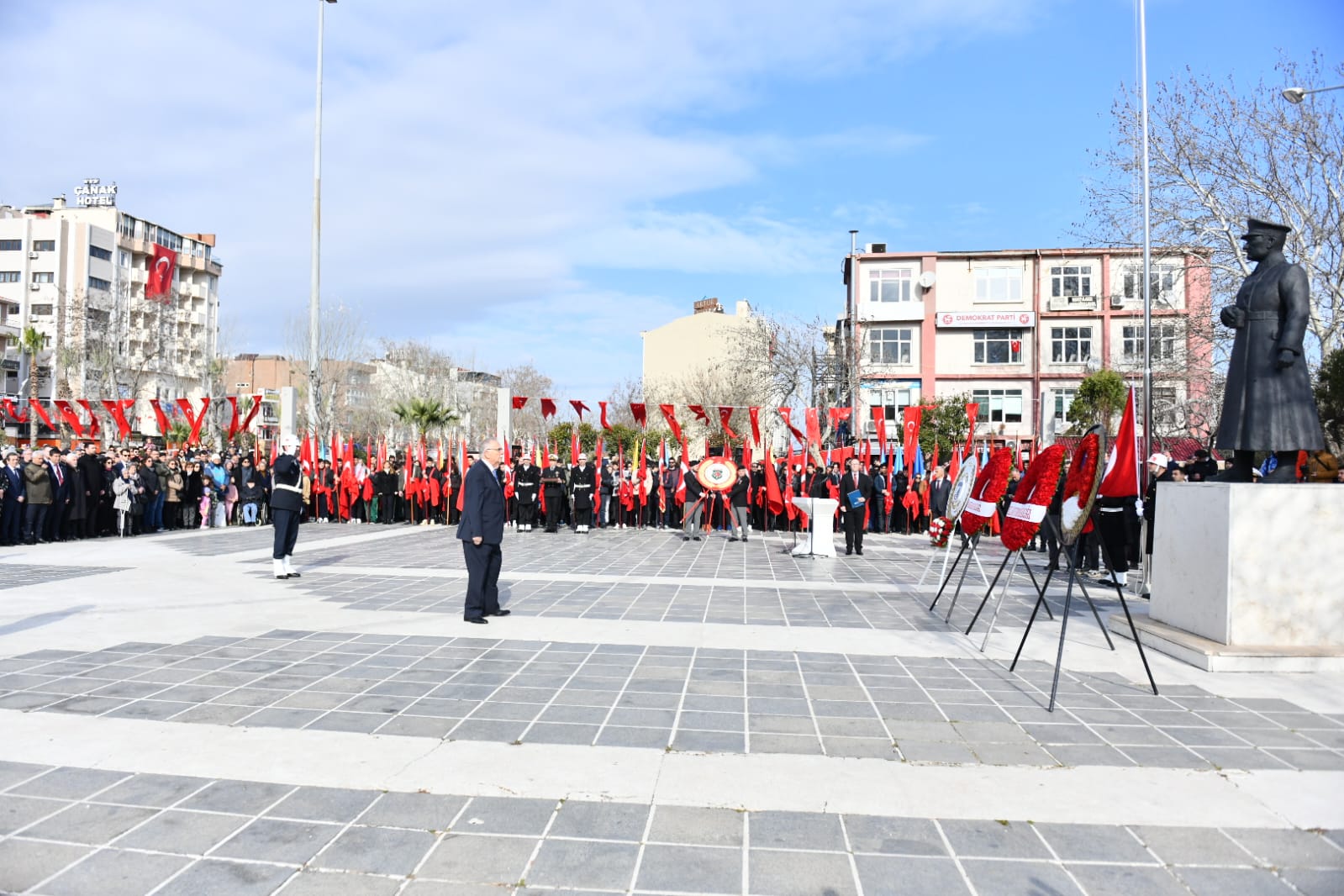 Törende 18 Mart Şehitleri Anma Günü ve Çanakkale Deniz Zaferi'nin 107. Yıldönümü anısına Atatürk Anıtına çelenk sunumu gerçekleşirken, devamında 1994 yılında TBMM tarafından şehitlerin anısına Çanakkale'ye verilen 'Çanakkale Geçilmez' yazılı altın madalya Türk bayrağına toka edildi.