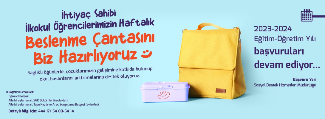 İhtiyaç sahibi çocuklarımız için hazırlanan beslenme çantalarının her hafta başında Barbaros, Fevzipaşa, Kemalpaşa, Namık Kemal, İsmetpaşa, Cevatpaşa ve Esenler Mahalle Muhtarlıklarından dağıtımı gerçekleşecek.