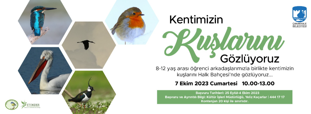8-12 yaş arası öğrenci arkadaşlarımızla birlikte 7 Ekim 2023 Cumartesi günü 10.00-13.00 saatleri arasında Halk Bahçesi'nde kentimizin kuşlarını gözlüyoruz.