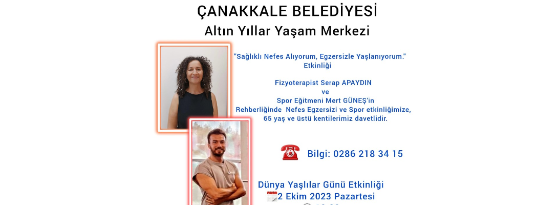 Çanakkale Belediyesi Altın Yıllar Yaşam Merkezinde, Dünya Yaşlılar Günü kapsamında “Sağlıklı Nefes Alıyorum, Egzersizle Yaşlanıyorum” etkinliği düzenlenecek.