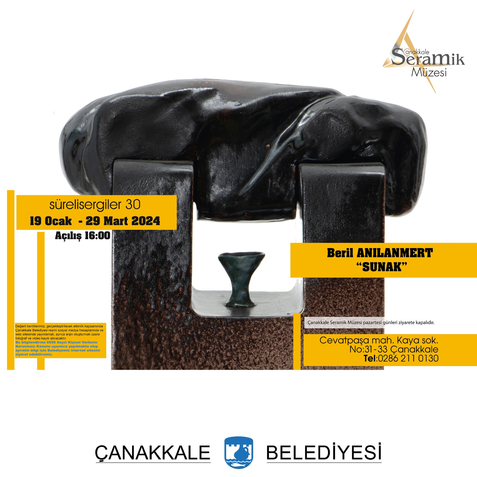Davetiye Dağıtım Yeri: Yazar ve Sanatçı Evi ve Çanakkale Belediyesi Seramik Müzesi