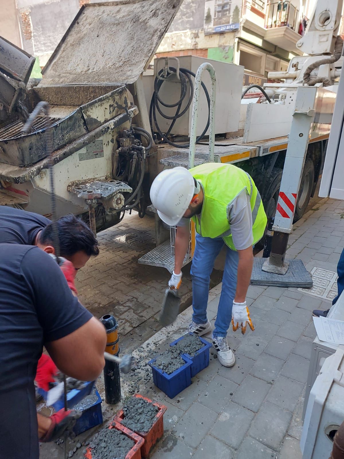 İlgili çalışmalar kapsamında mevzuata ek olarak, beton döküm sürecinde taze beton numunesi alınarak laboratuvar analizleri yapılıyor. Bu doğrultuda yeni yapıların standartlara uygunluğu kontrol ediliyor.