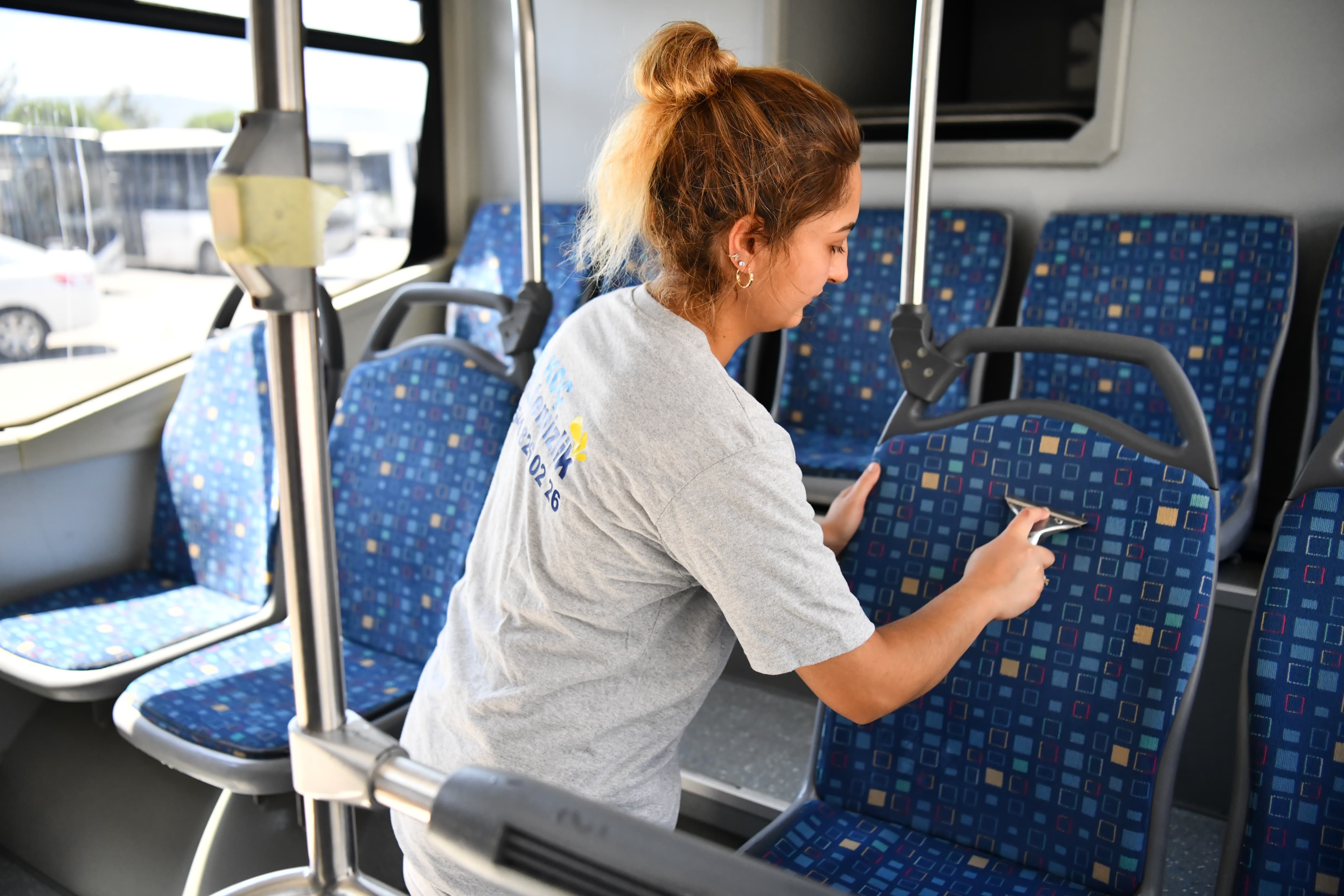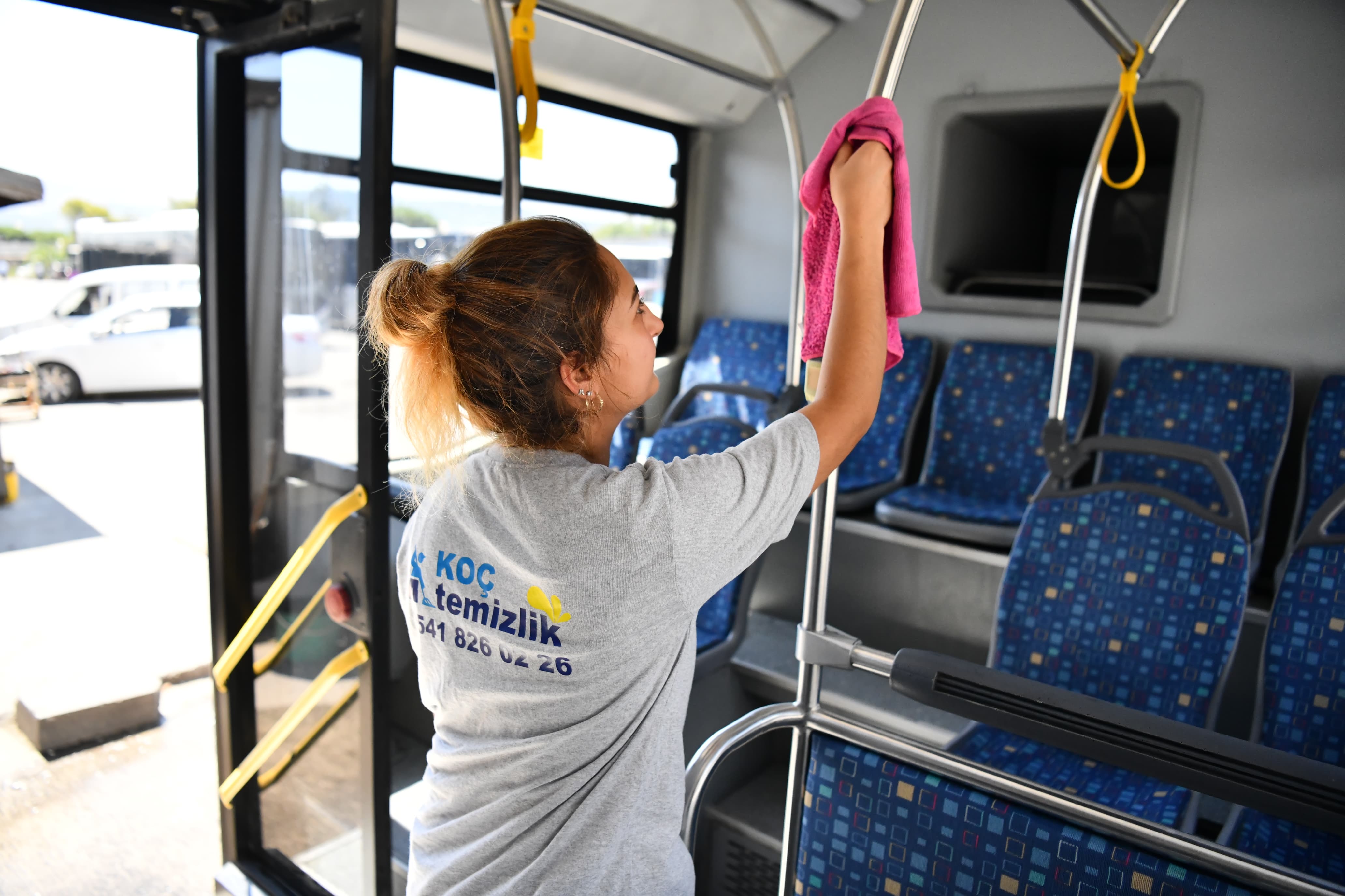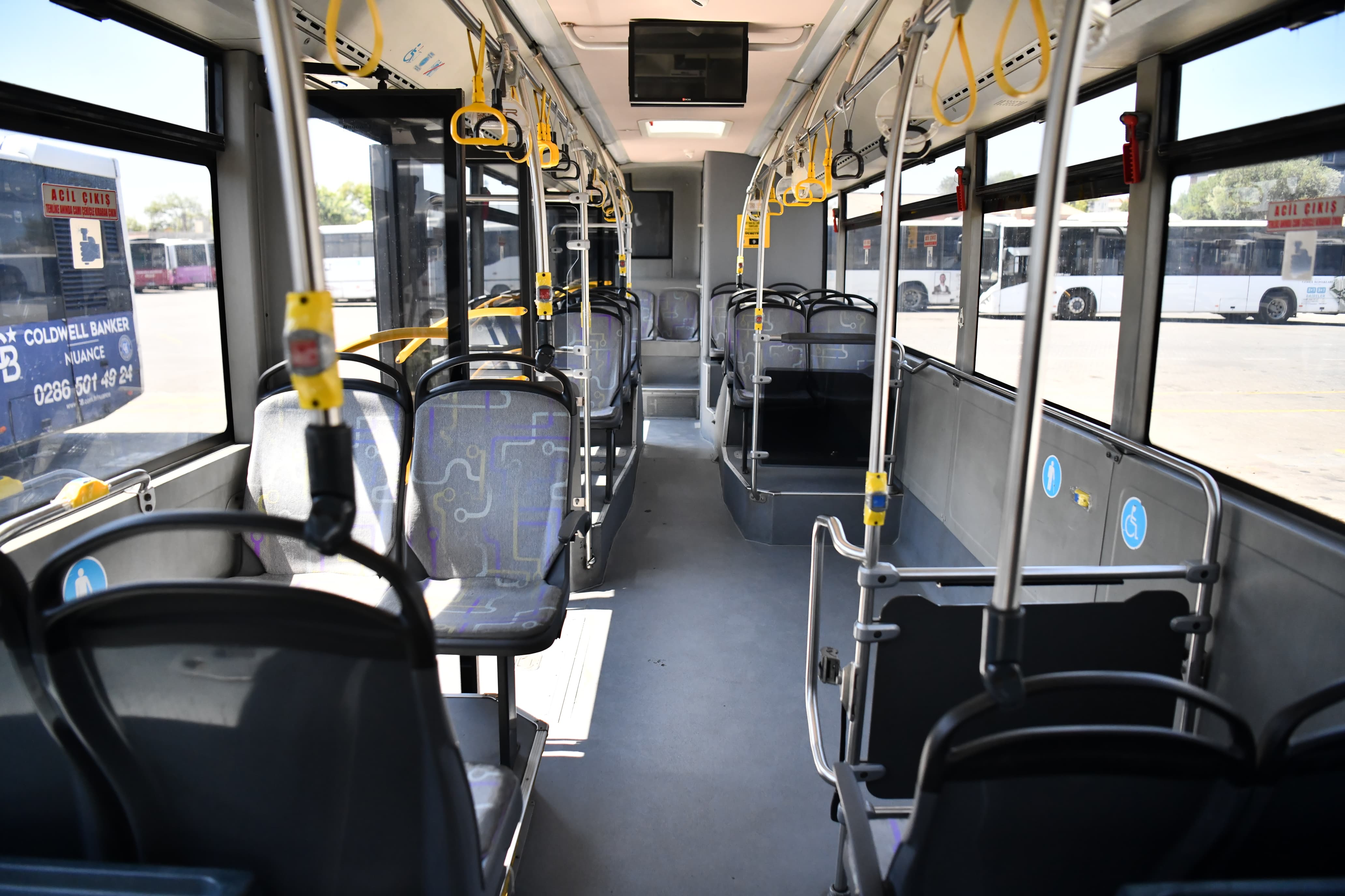 Hemşehrilerimizin daha hijyenik ve temiz araçlarda kent içi ulaşımını sağlayabilmeleri amacı ile toplu taşıma araçlarında düzenlenen rutin temizlik çalışmaları devam ediyor. Araç içlerinde gerçekleştirilen detaylı temizlik çalışması kapsamında oturma alanları yıkanırken sürücü kabinleri, tutamaklar, inme butonları, yolcu koltuk tutamakları da silinerek temizleniyor. Öte yandan zeminler ve camlar da köpüklü sular ile yıkanıyor.