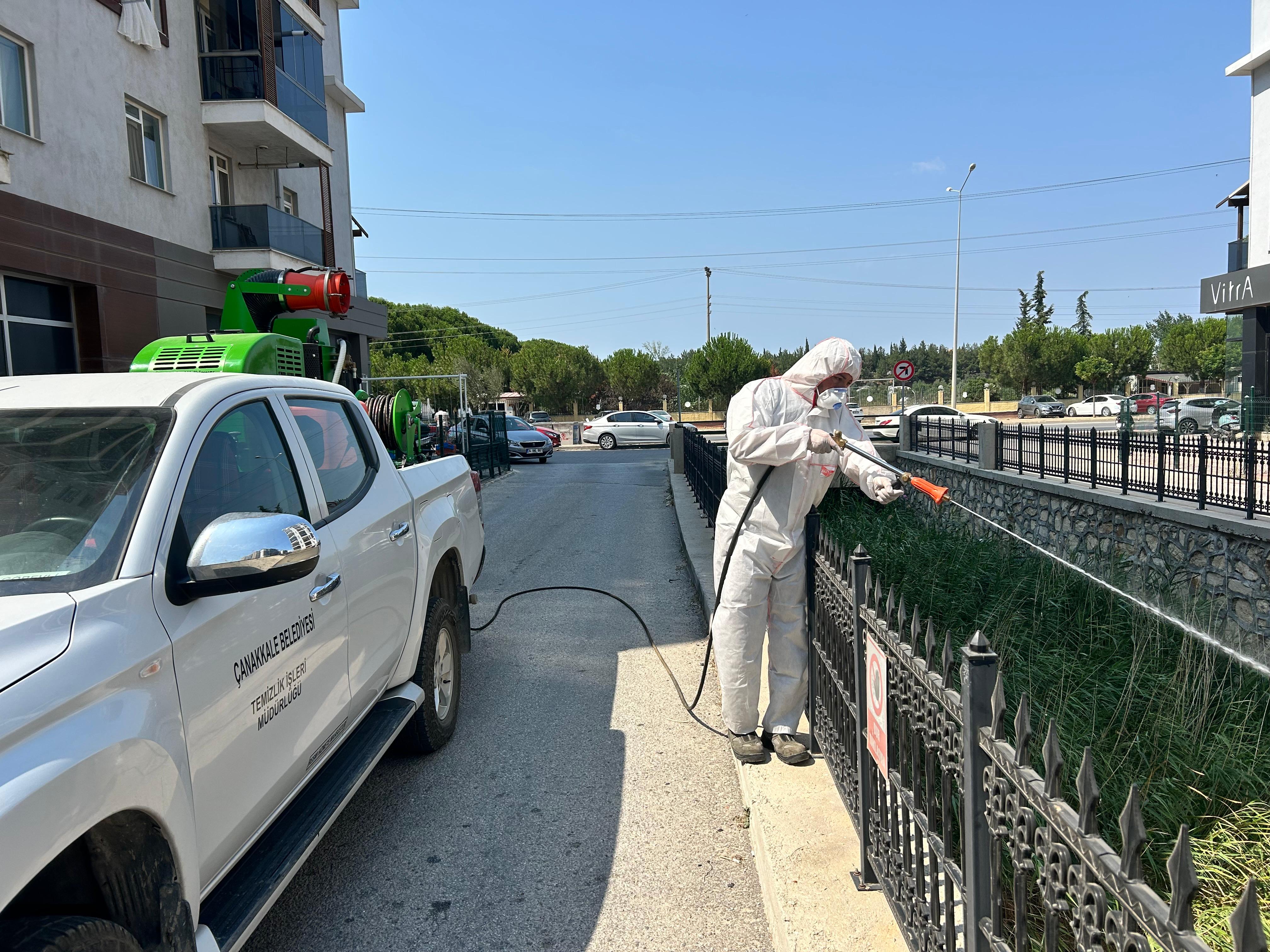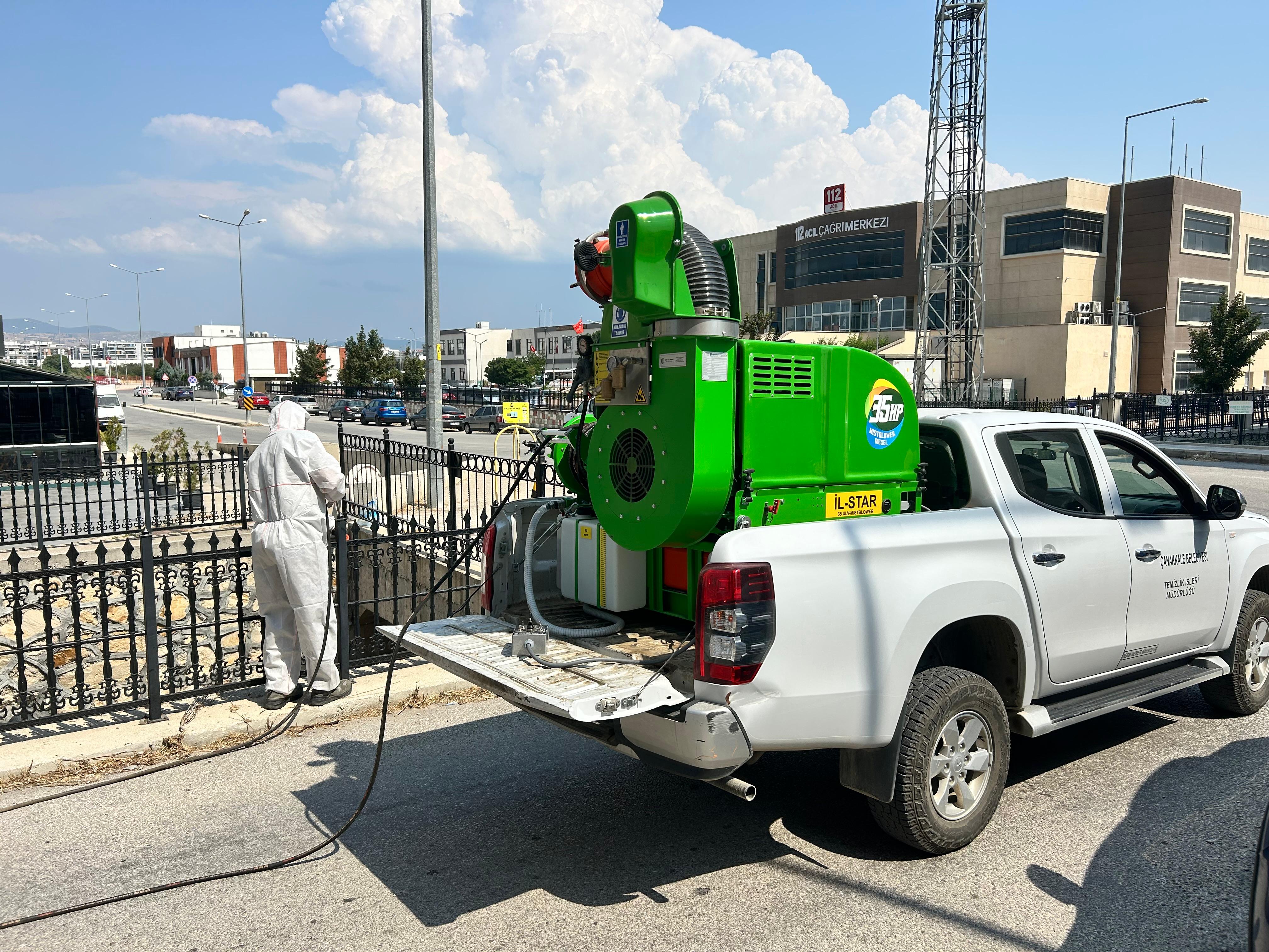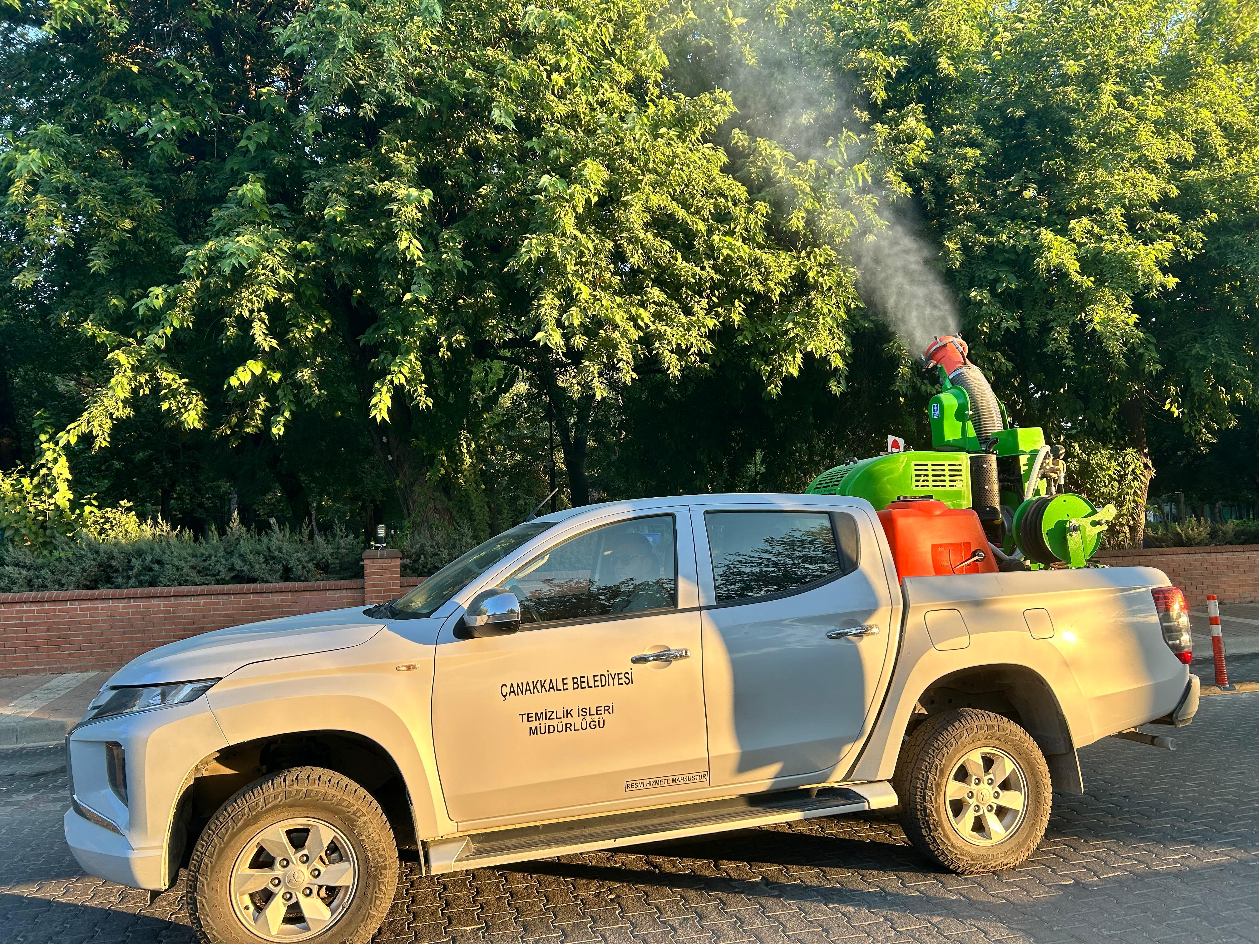 Hava sıcaklıklarının artması ile birlikte çoğalan sivrisinek ve karasinek ile mücadele eden Çanakkale Belediyesi Temizlik İşleri Müdürlüğü ekipleri, kent genelinde mist blower makinası ile biyosidal ürün uygulaması gerçekleştiriyor.