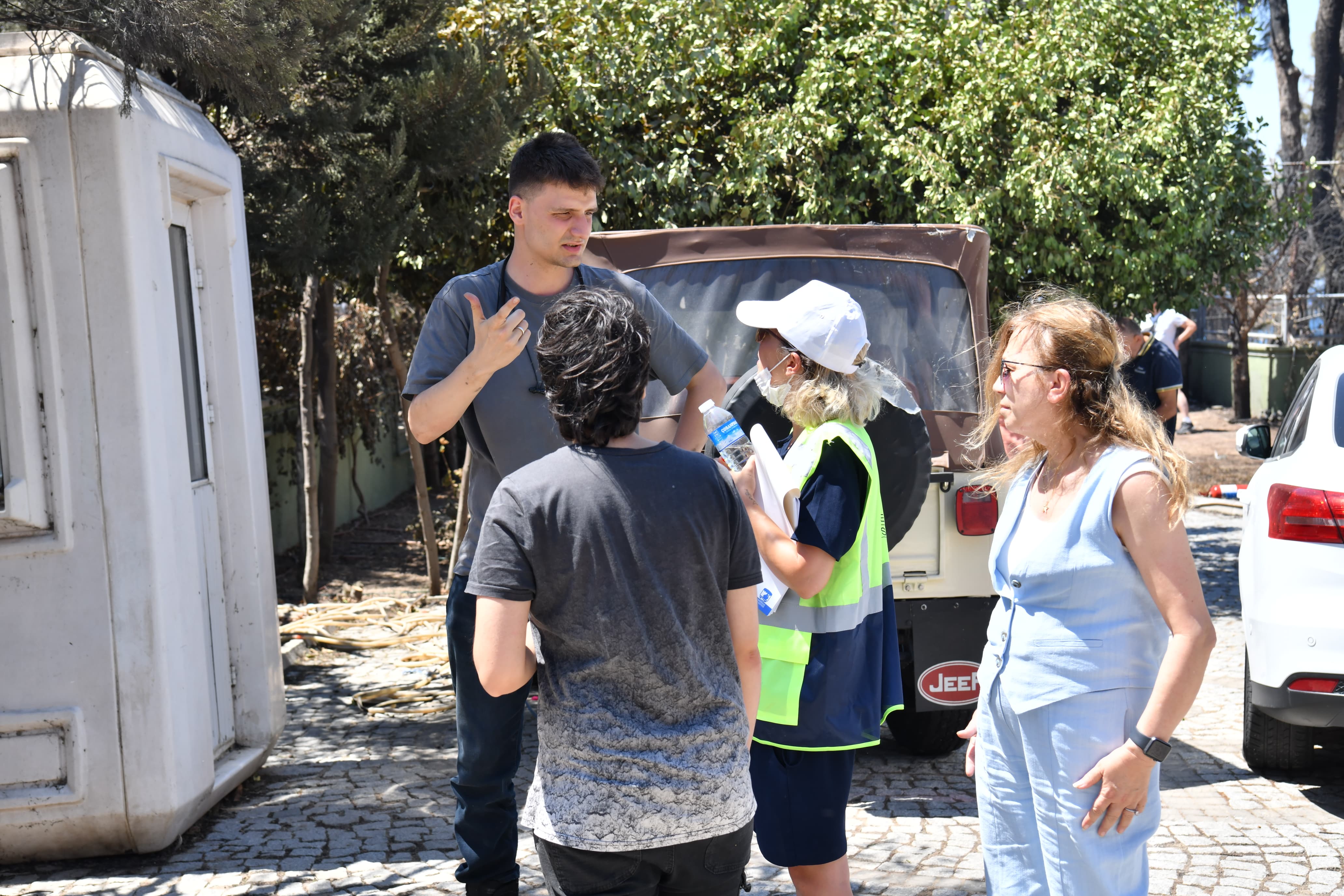 Büyük bir alanda etkili olan, özellikle Güzelyalı, Dardanos ve İntepe bölgesinde yerleşim yerlerine zarar veren yangının ilk anlarından itibaren Belediye Başkanı Muharrem Erkek de sahada bulunarak söndürme ve kurtarma çalışmalarının başında yer aldı.
