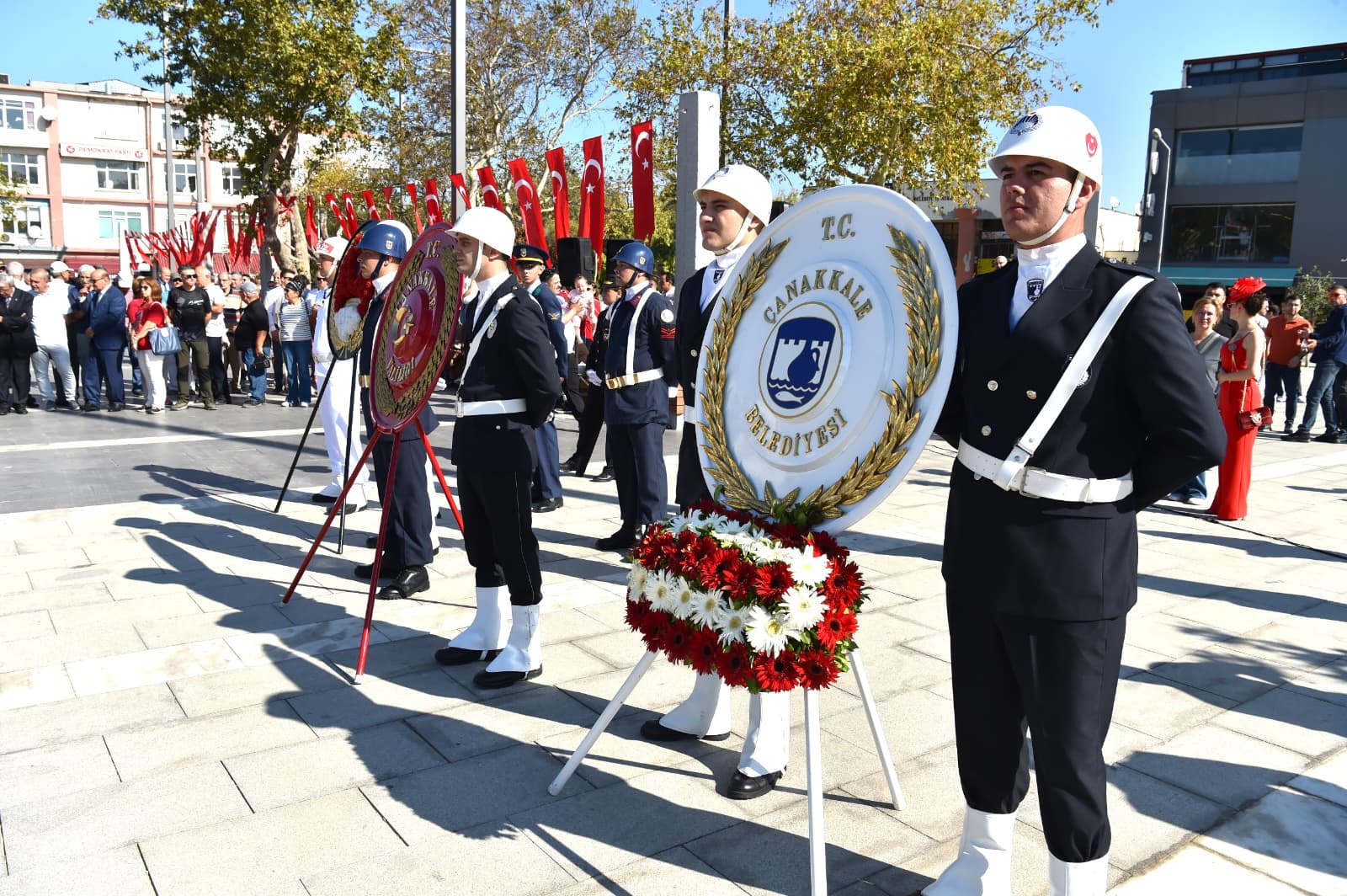 Zafer Bayramı kapsamındaki etkinlikler, sabah saatlerinde Cumhuriyet Meydanı'nda düzenlenen çelenk sunma töreni ile başladı. Törene Çanakkale Valisi Doç. Dr. Ömer Toraman, Boğaz ve Garnizon Komutanı Tuğamiral Mustafa Biçen, CHP Çanakkale Milletvekili İsmet Güneşhan, İYİ Parti Çanakkale Milletvekili Rıdvan Uz ve Çanakkale Belediye Başkan Vekili Bülent Şarlan başta olmak üzere il protokolü, kurum ve kuruluş temsilcileri, siyasi parti temsilcileri, askeri personel ve hemşehriler katıldı. Atatürk Anıtı'na çelenk sunumu ile başlayan tören, saygı duruşu ve İstiklal Marşı'nın okunması ile sona erdi.