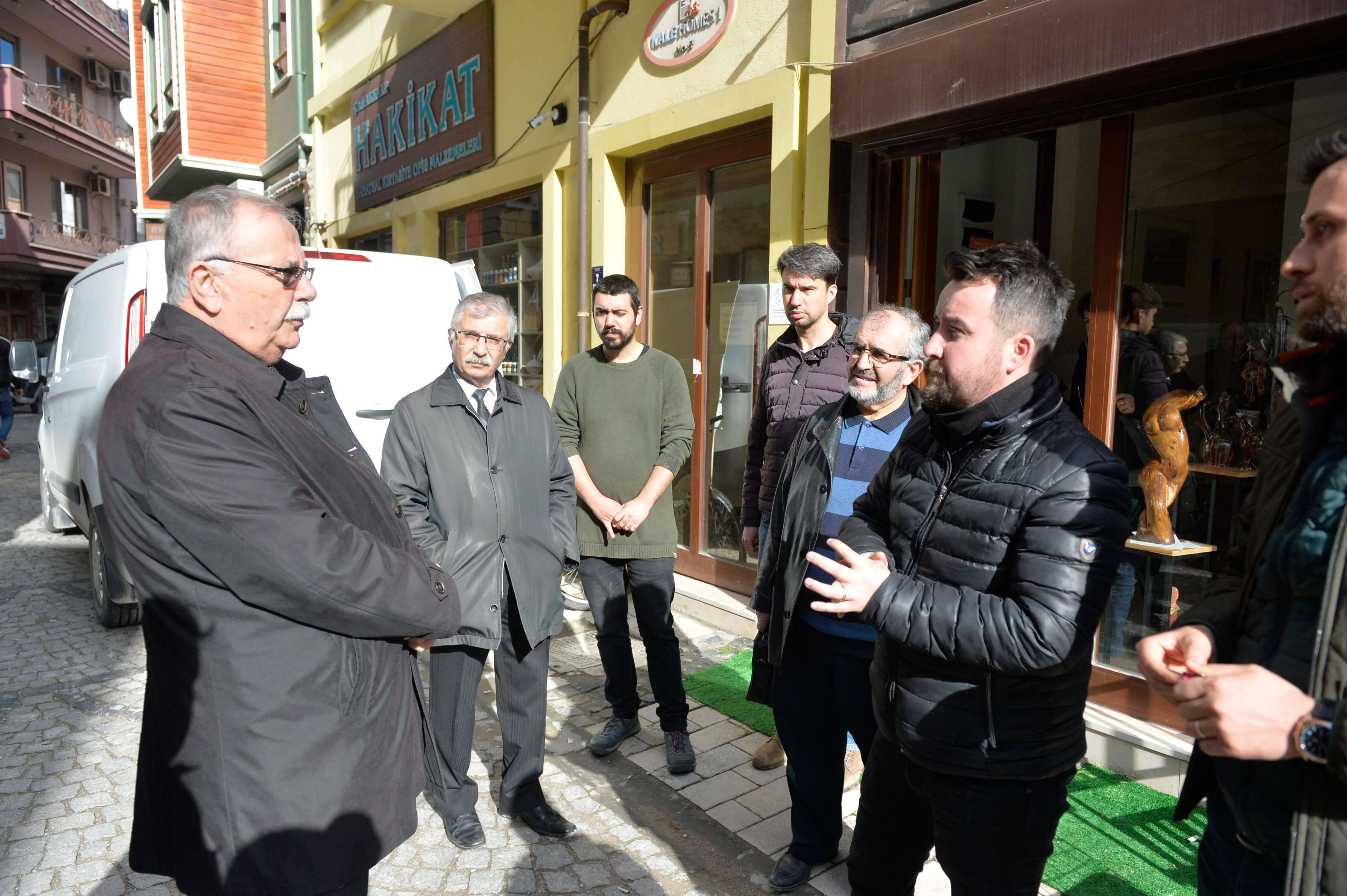 İncelemenin ardından Fevzipaşa Mahallesi Fatih Sokak'ta bulunan Sanatsever'i ziyaret eden Başkan Gökhan, burada sergilenen "Derin Çizgi” isimli gravür sergisini gezerken, sergide bulunan eserler hakkında bilgi aldı. Fatih Sokak ve Çarşı Caddesi'nde de esnaf ile sohbet eden Başkan Gökhan, esnafların sorunlarını dinledi.