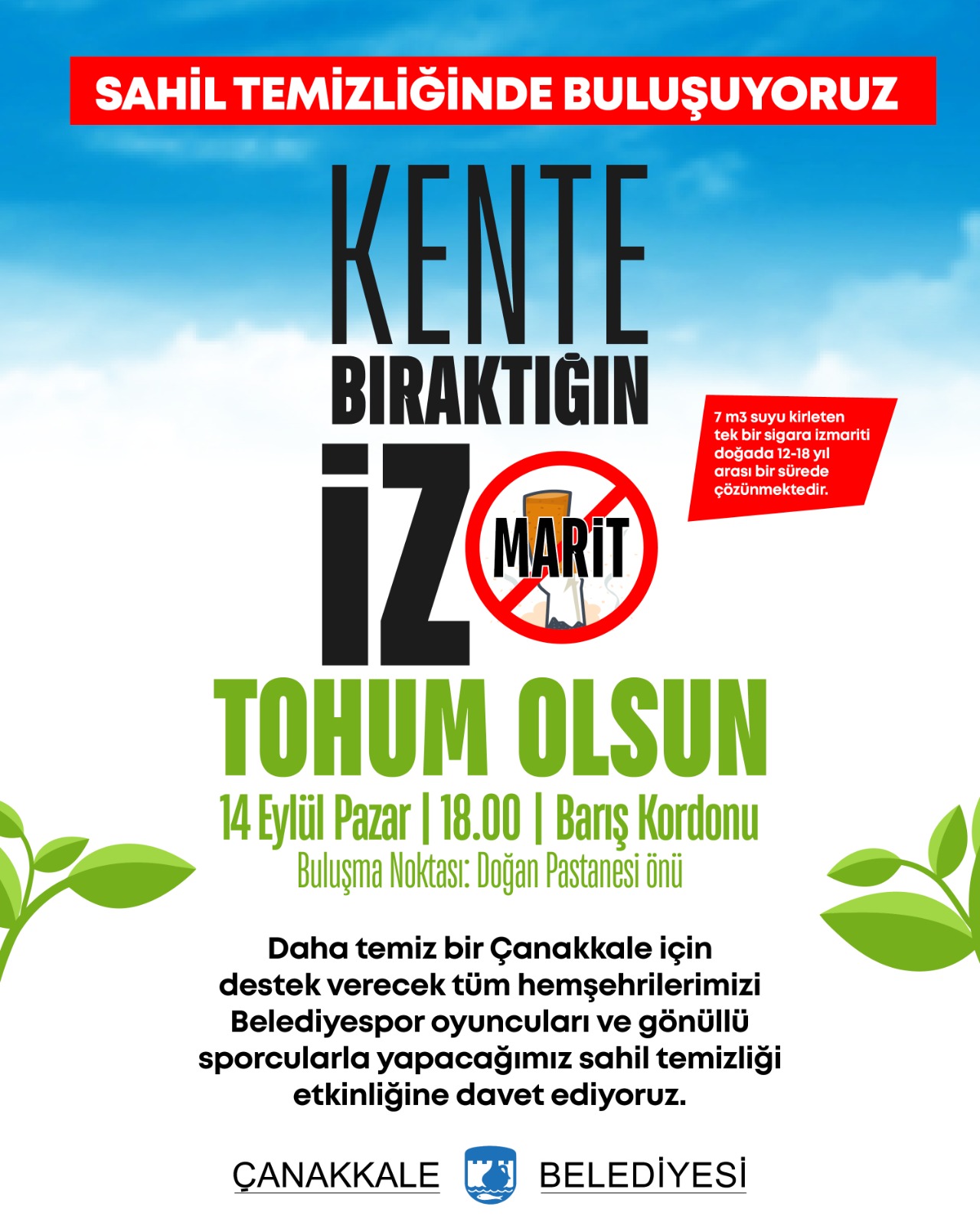 Daha temiz bir Çanakkale için destek verecek tüm hemşehrilerimizi, Belediyespor oyuncuları ve gönüllü sporcularla yapacağımız sahil temizliği etkinliğine davet ediyoruz.
