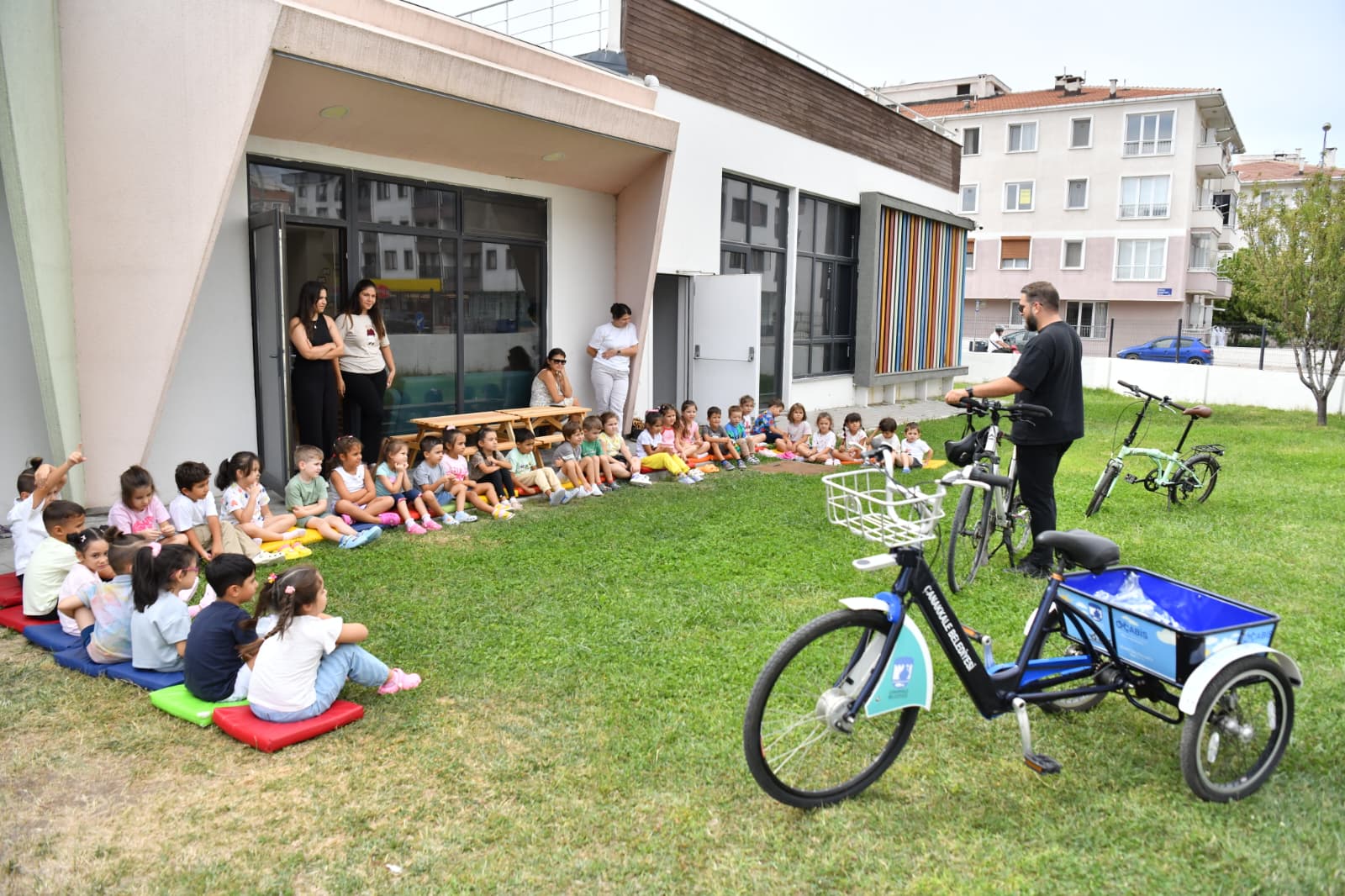 17 Eylül 2025 Çarşamba günü Çanakkale Belediyesi Cevatpaşa ve Barbaros Atam Kreş'te düzenlenen eğitimde Çanakkale Belediyesi Bisiklet Şefliği Birim Sorumlusu Doğancan Çetin, minik öğrencilere bisiklet ve güvenli bisiklet kullanımına ilişkin bilgiler verdi.