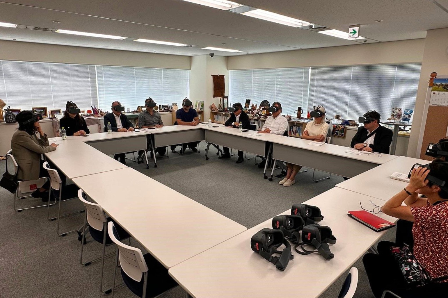 Heyet ayrıca, Sendai Şehri Kriz Yönetim Bürosu Afet Azaltma Teşvik Biriminin sunduğu VR gözlükler aracılığıyla deprem simülasyonunu deneyimledi.