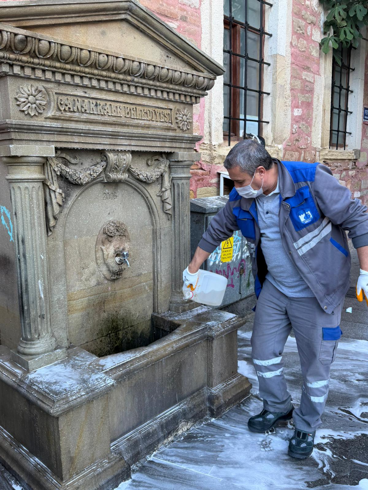 Çanakkale Belediyesi Temizlik İşleri Müdürlüğü ekipleri, kent genelinde bulunan sokak çeşmelerinde temizlik çalışması düzenli aralıklarla gerçekleştiriliyor.