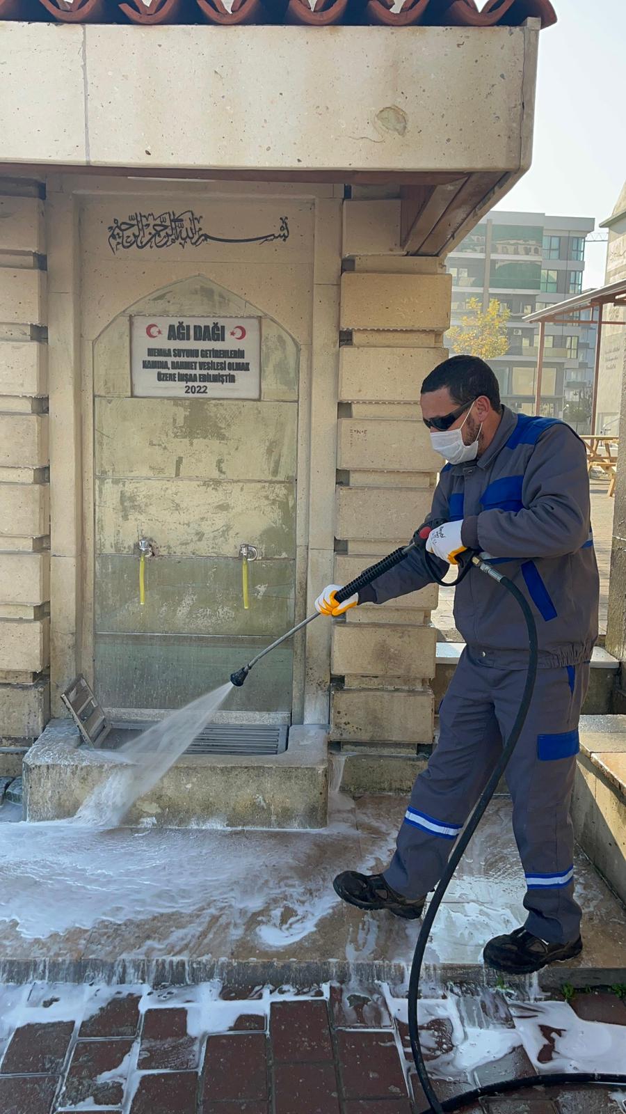 Rutin olarak düzenlenen çalışma kapsamında, çeşitli nedenler ile çeşmelerde oluşan yosunlar ve lekeler özel temizlik ekipmanları ile yıkanarak temizlendi.