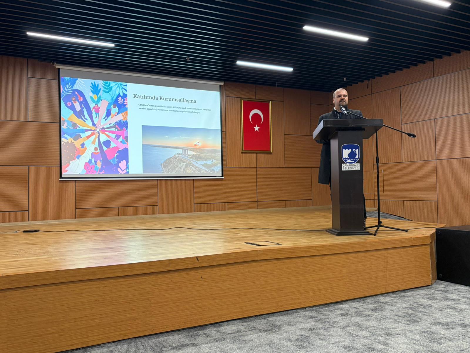 Çalıştaya Çanakkale Belediyesi'ni temsilen katılan Strateji Geliştirme Birimi personeli Mustafa Ertan, birinci oturumunda yaptığı sunumda “Türkiye'de Demokratik Yerel Yönetimin Geliştirilmesi için Sivil Katılımın Güçlendirilmesi” başlığında katılımcılara bilgi paylaşımında bulundu. Birinci oturumda yapılan sunumlarda Avukat ve Kent-Der üyesi Ali Aydın Çalıdağ “Sivil Katılım Örgütlerini Tanımlayan Kanunlar” başlığında, ÇOMÜ Sivil Toplum Kuruluşları Uygulama ve Araştırma Merkezi Müdür Yardımcısı Dr. Öğr. Üyesi Serkan Özdemir ise “Katılımda Kurumsallaşma” başlığında katılımcılara bilgi verdi.