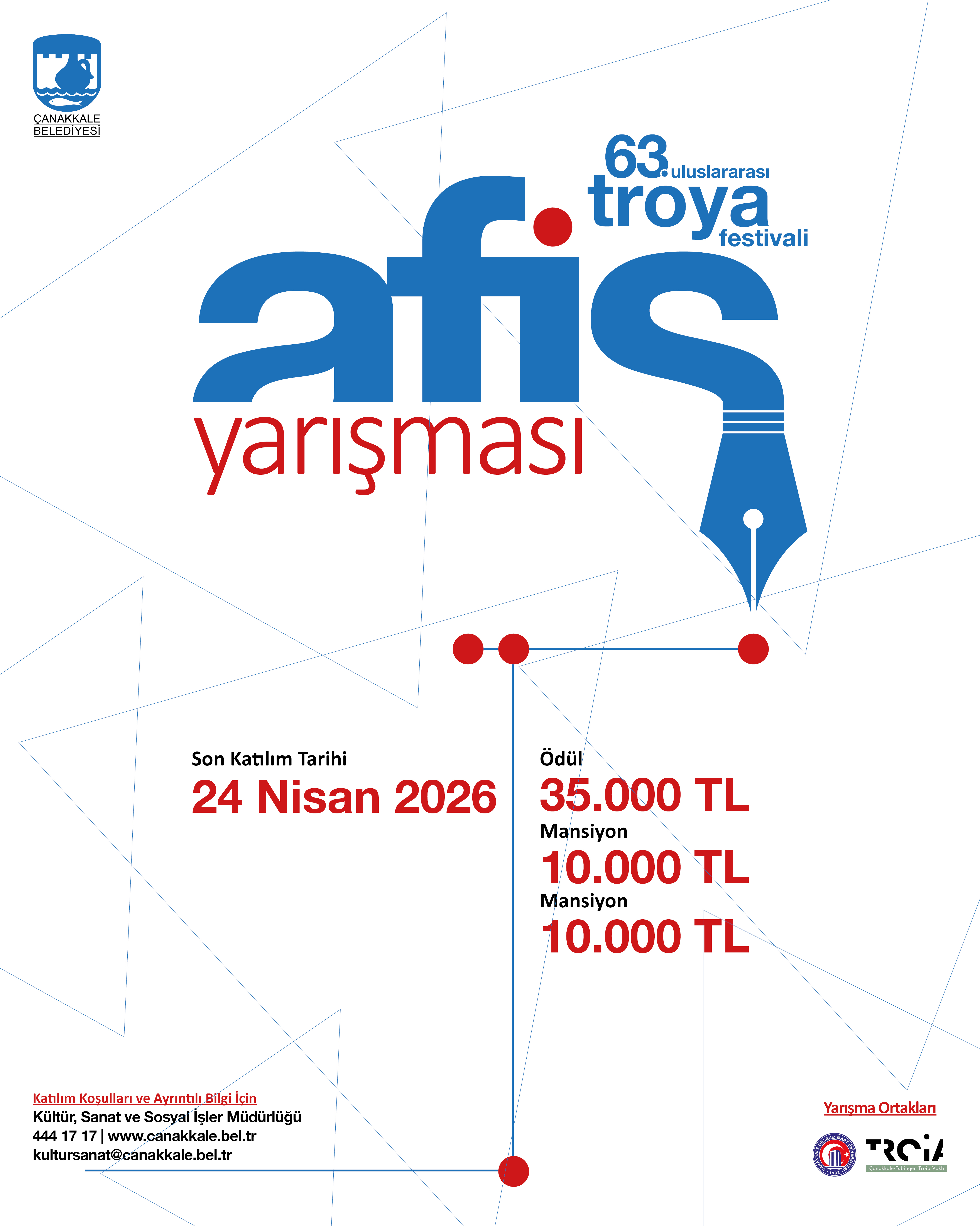 Çanakkale Belediyesi tarafından uzun yıllardır düzenlenen Uluslararası Troya Festivali'nin 63.'sünün duyurularında kullanılacak afişi belirlemek üzere hazırlanan Afiş Tasarım ve Uygulama Yarışması için başvurular başladı.